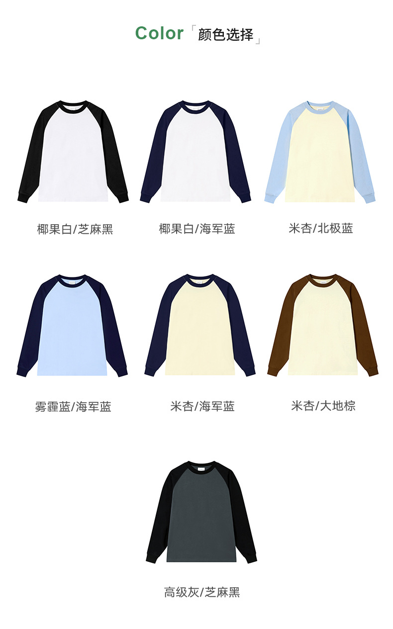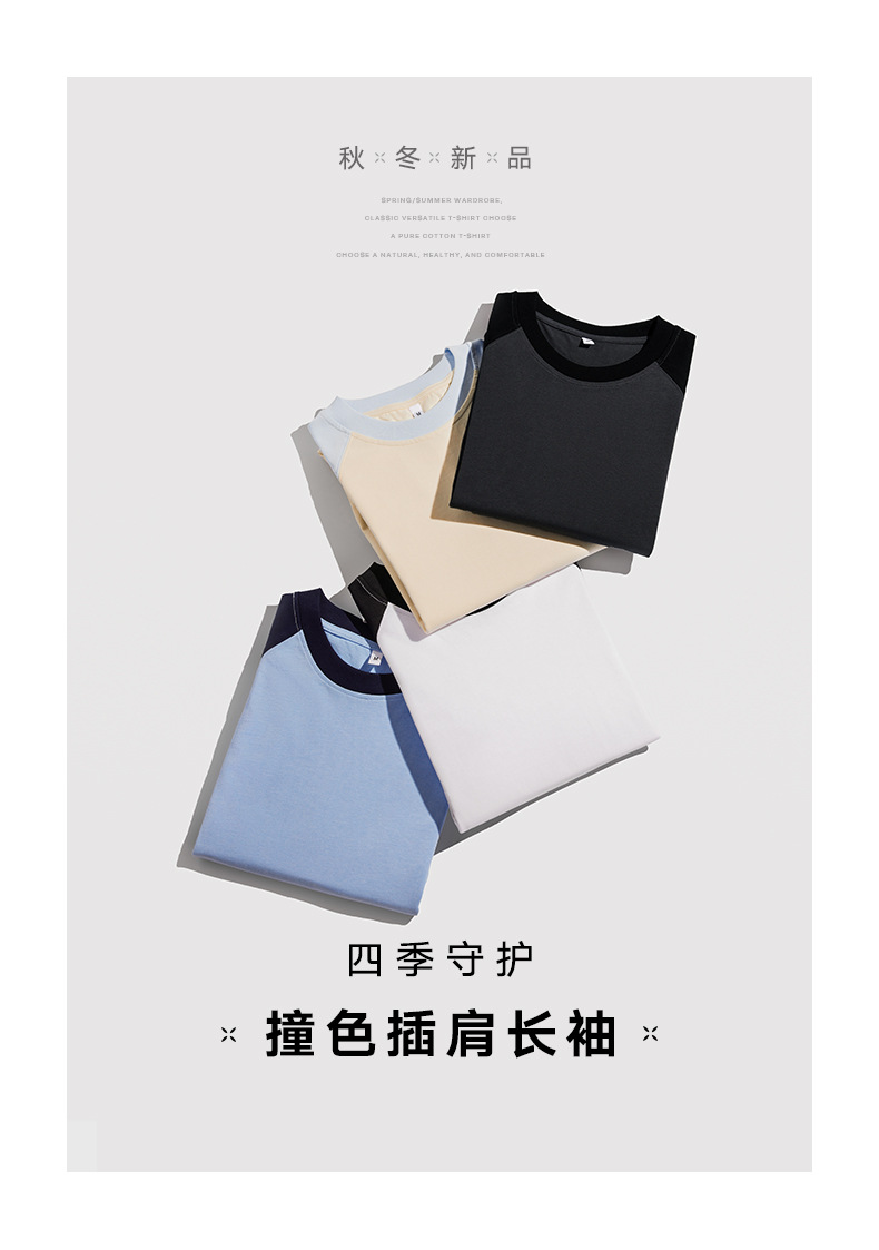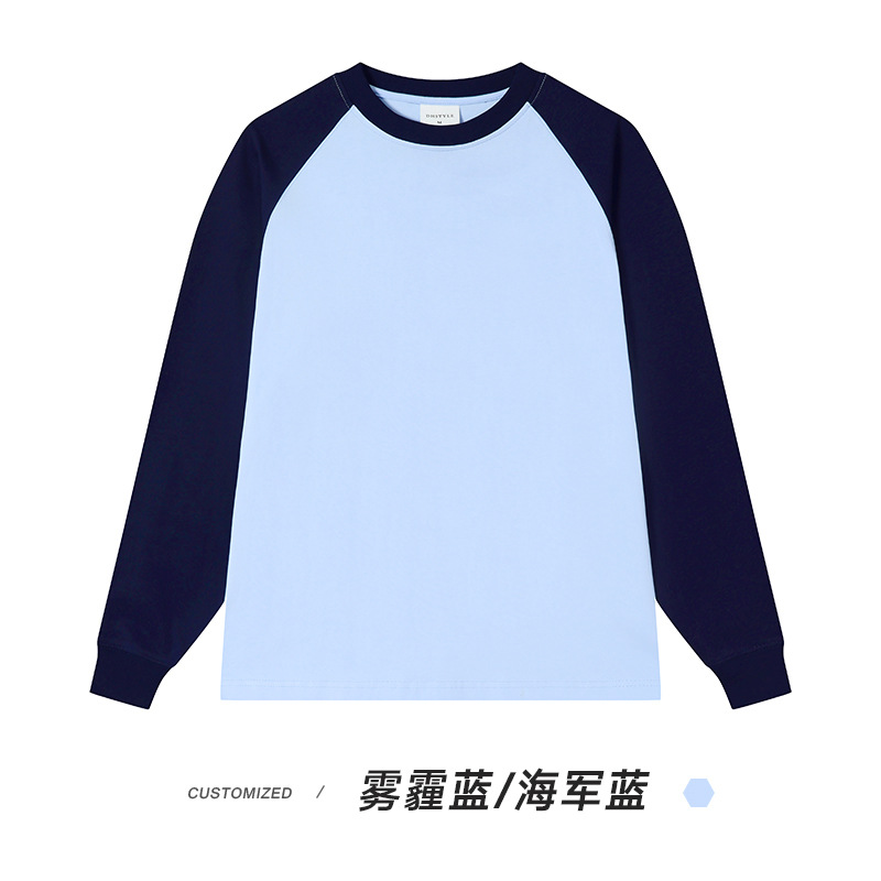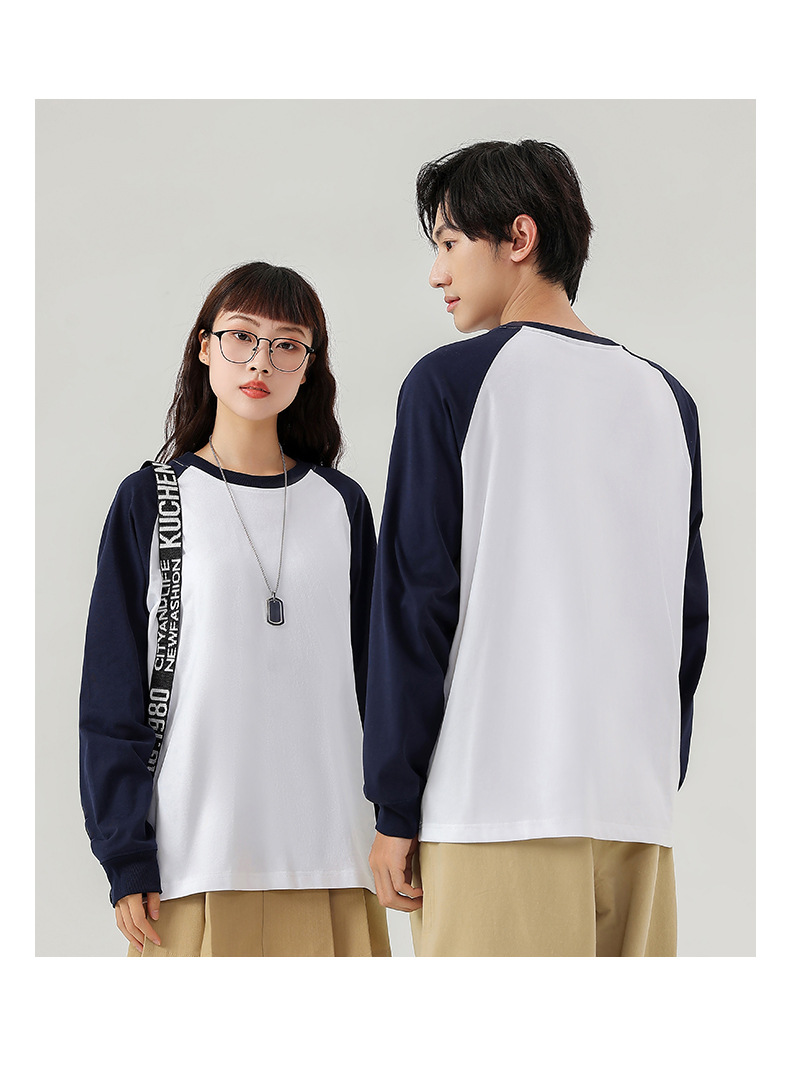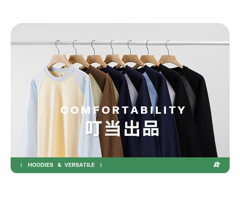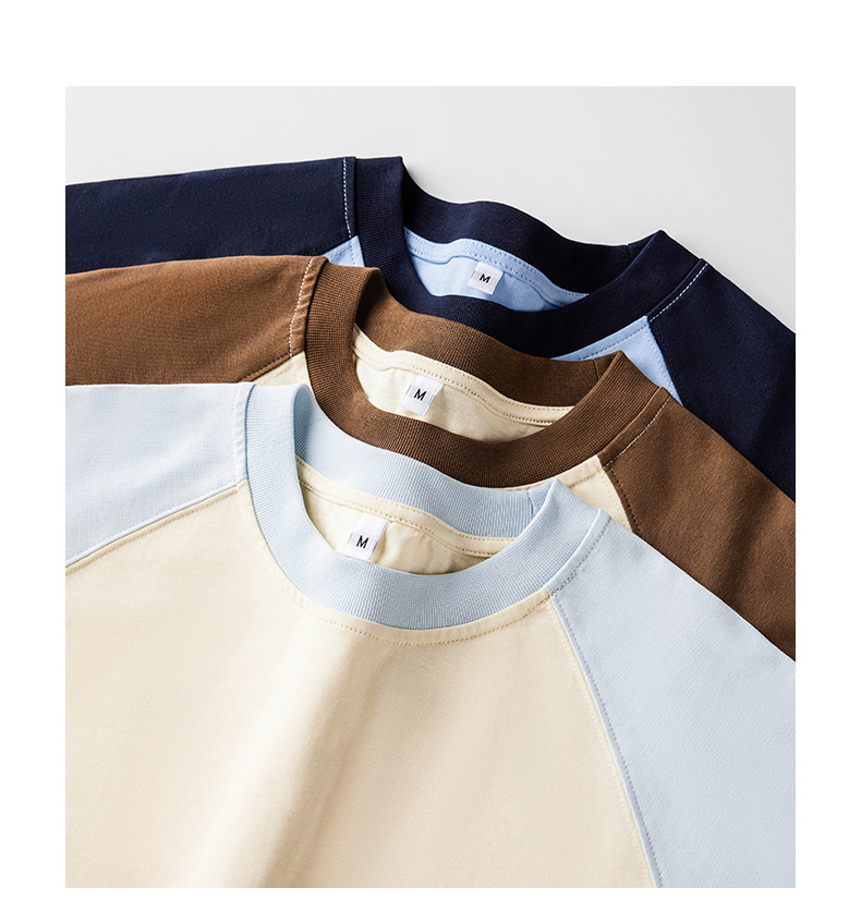 남성용 250g 헤비급 순면 라글란 긴팔 티셔츠, 컬러 매칭 스레드 소매, 여성용 아메리칸 레트로 라운드넥 초가을 베이스 레이어 셔츠스토어 가기