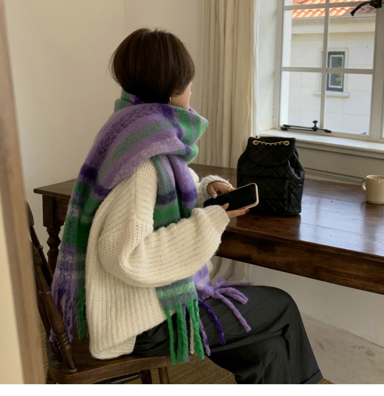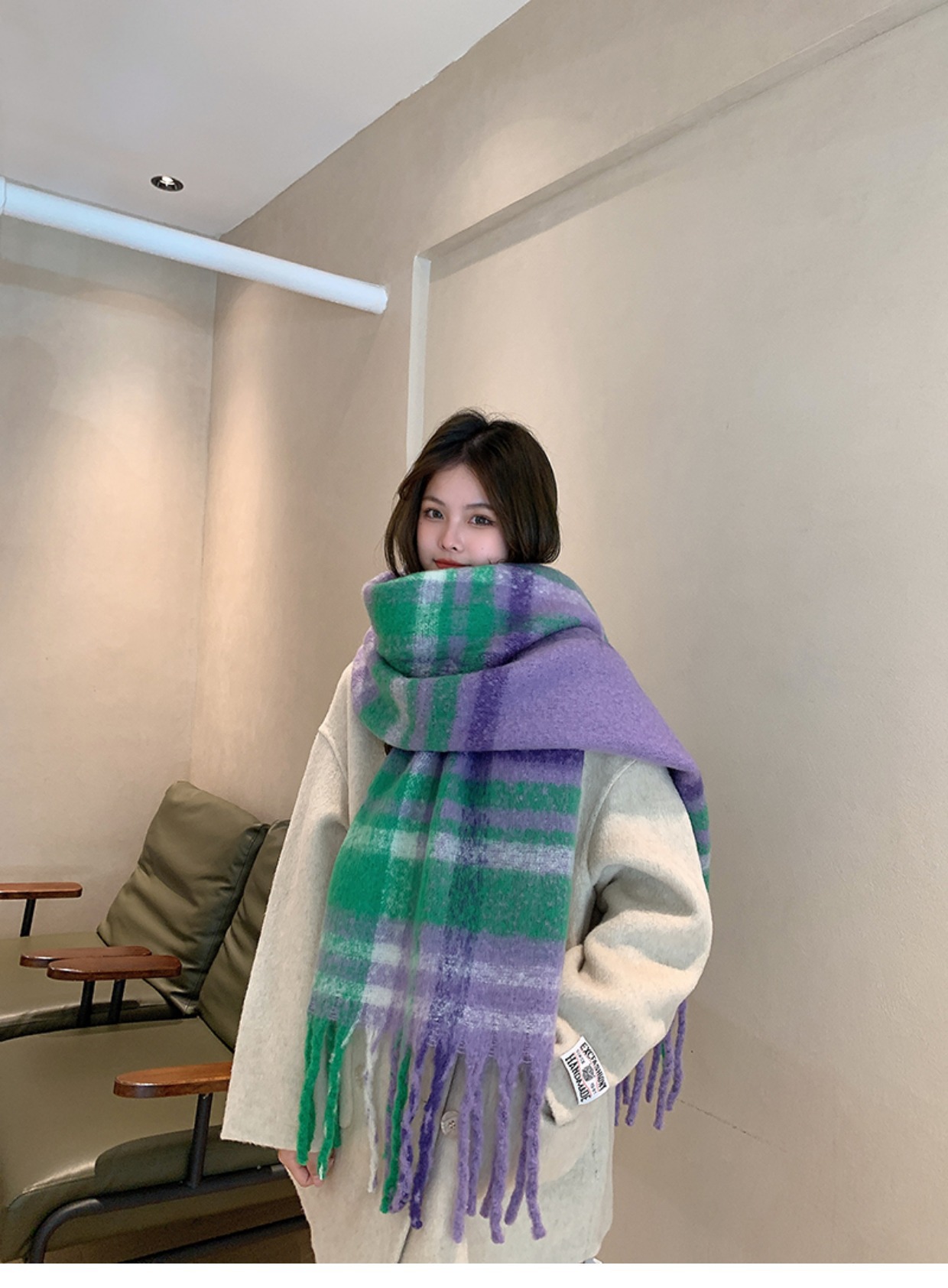 무지개 격자 무늬 가을과 겨울 모조 캐시미어 두꺼운 수염 스카프 여성 학생 커플 모헤어 따뜻한 목 두꺼운 숄스토어 가기