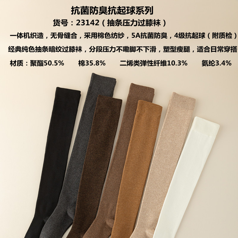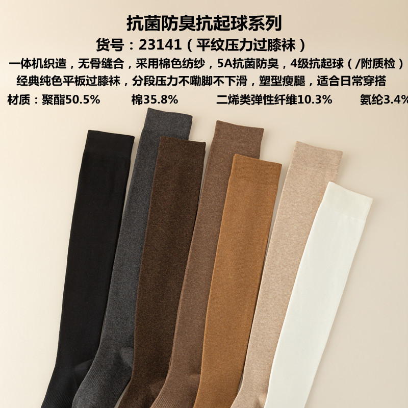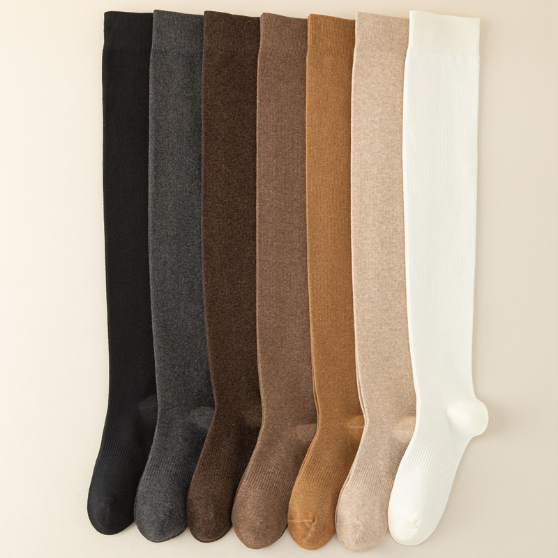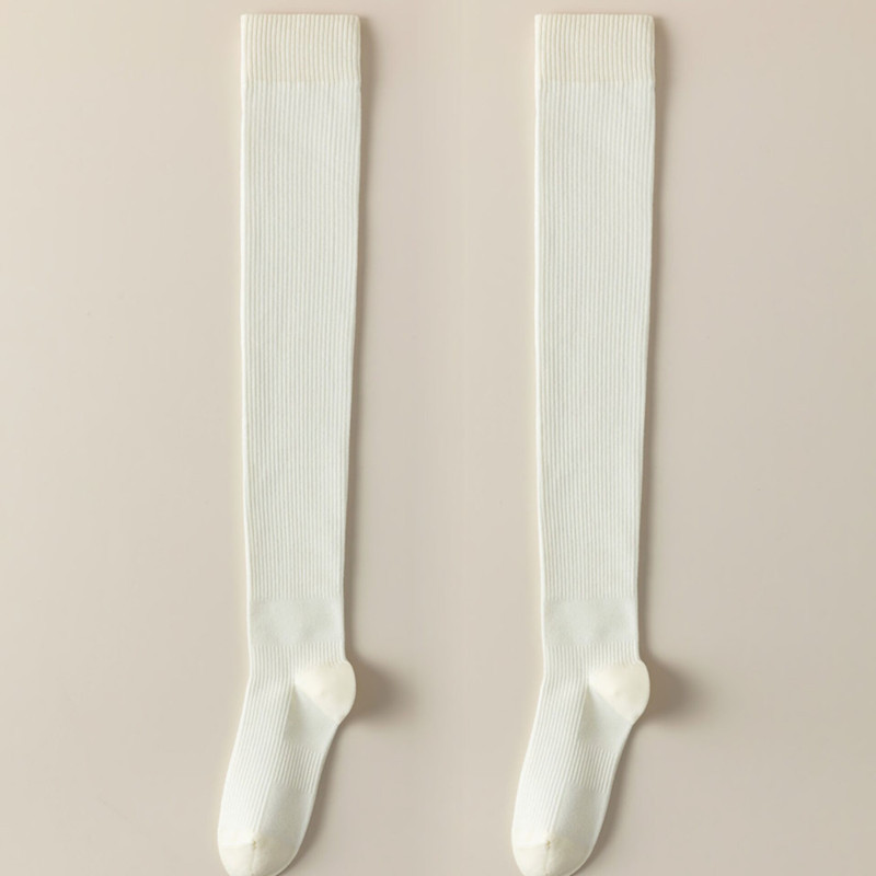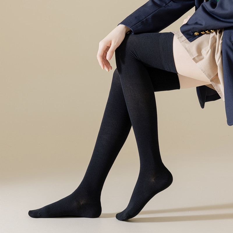 새로운 압력 무릎 양말 여성용 스포츠 단색 허벅지 양말 얇은 다리 모양 스타킹 봄과 가을 미끄럼 방지 스타킹 면