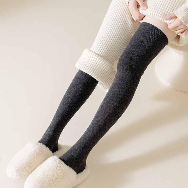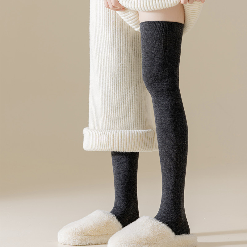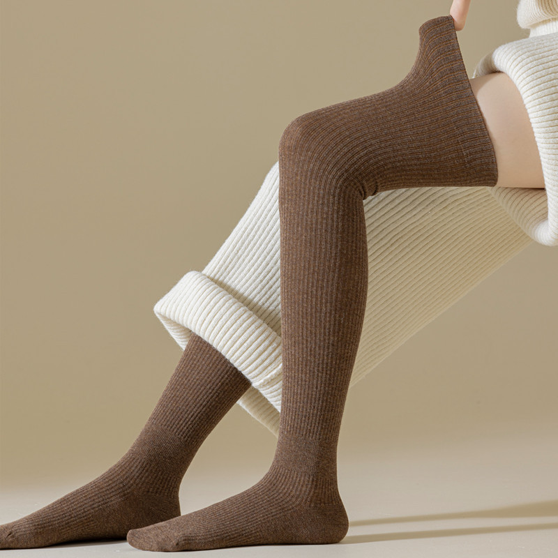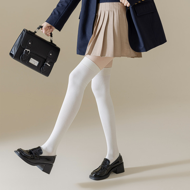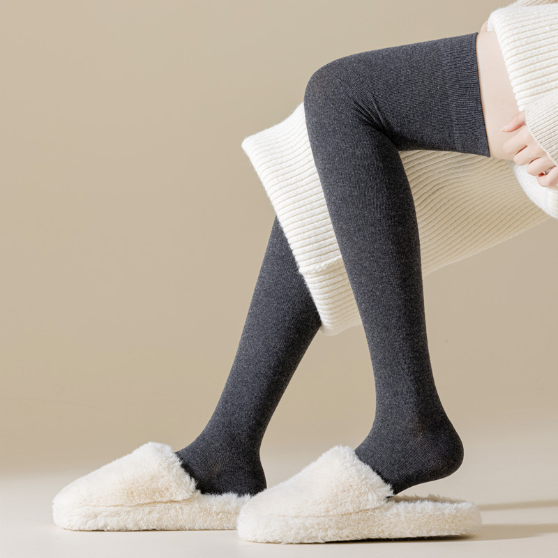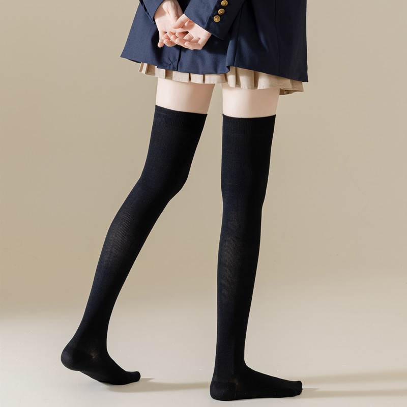 새로운 압력 무릎 양말 여성용 스포츠 단색 허벅지 양말 얇은 다리 모양 스타킹 봄과 가을 미끄럼 방지 스타킹 면