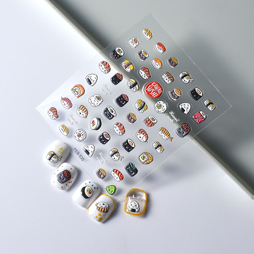 일본 요리 스시 네일 스티커 회 5D 방수 착용 네일 스티커 입체 구호 네일 스티커 주먹밥