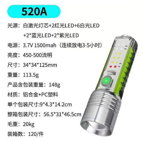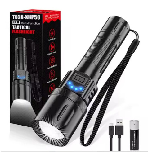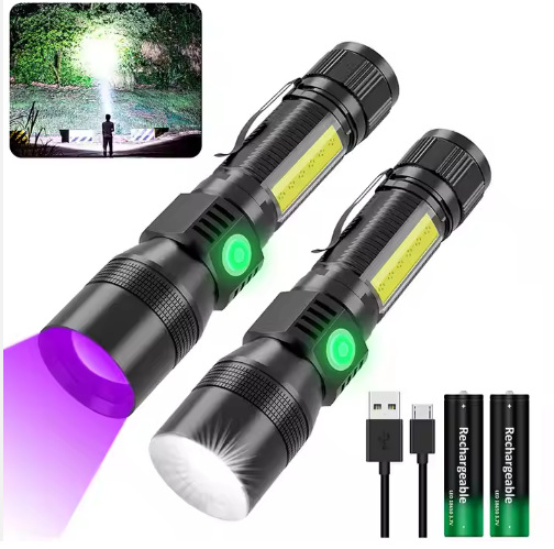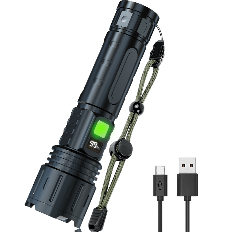 USB 충전식 배터리 디스플레이 줌 화이트 레이저 비상 손전등 다기능 휴대용 야외 손전등