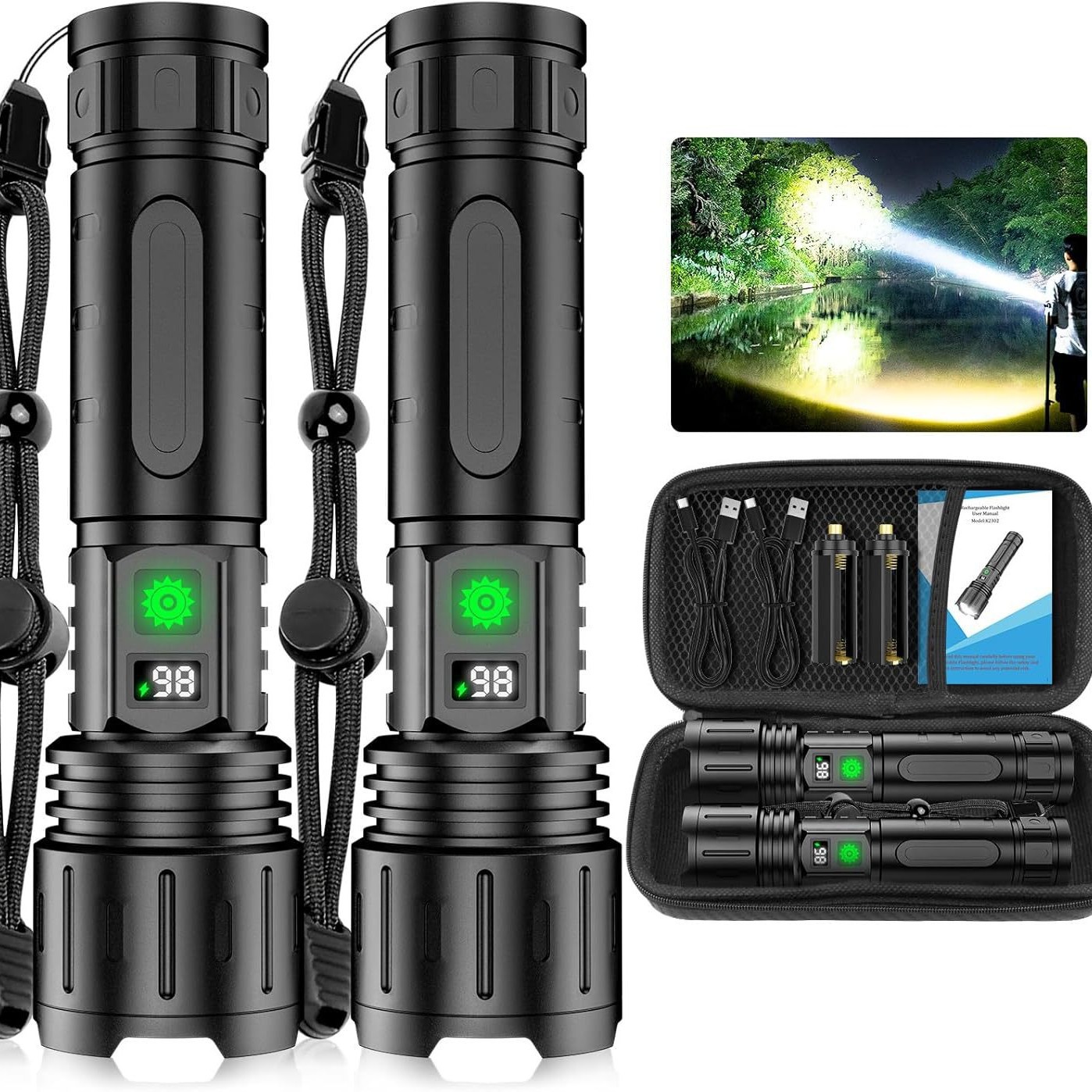 USB 충전식 배터리 디스플레이 줌 화이트 레이저 비상 손전등 다기능 휴대용 야외 손전등스토어 가기