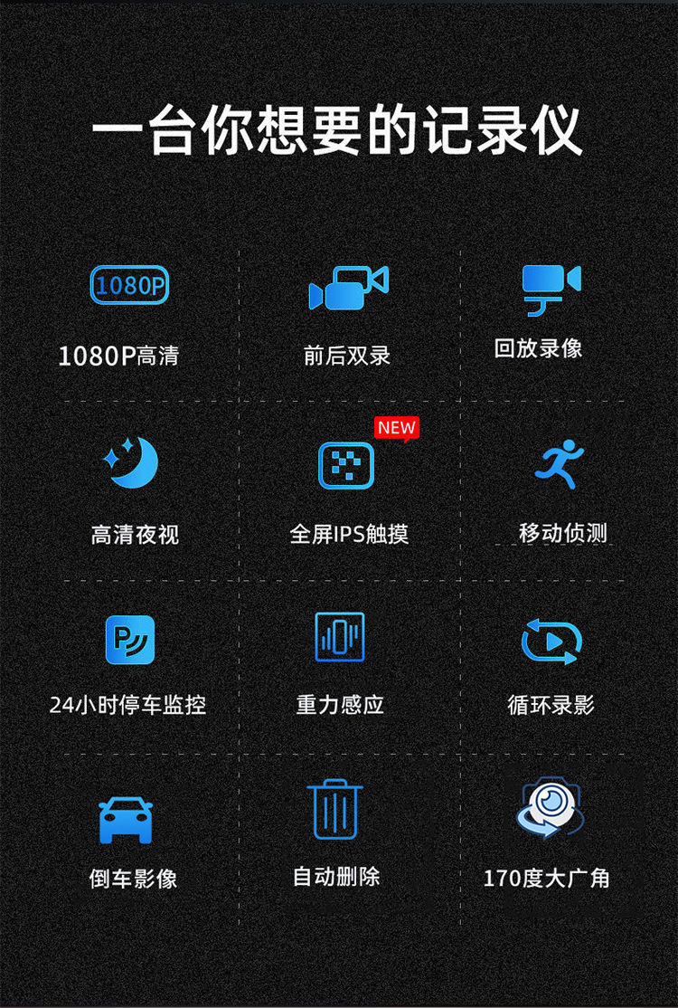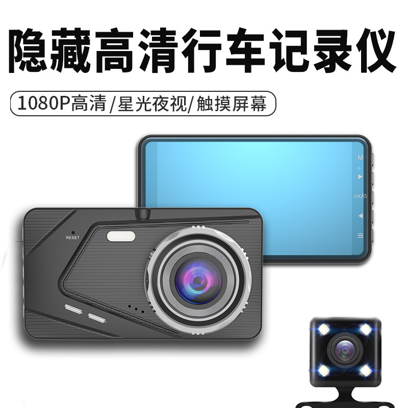자동차 4 인치 운전 레코더 듀얼 카메라 HD 1080p 야간 투시경 자동차 dvr 다중 언어스토어 가기