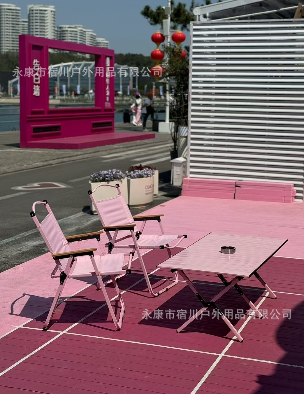 야외 핑크 탄소 강철 테이블 및 의자 커밋 의자 접이식 의자 캠핑 피크닉 디자인 센스 캐주얼 커피 숍 의자