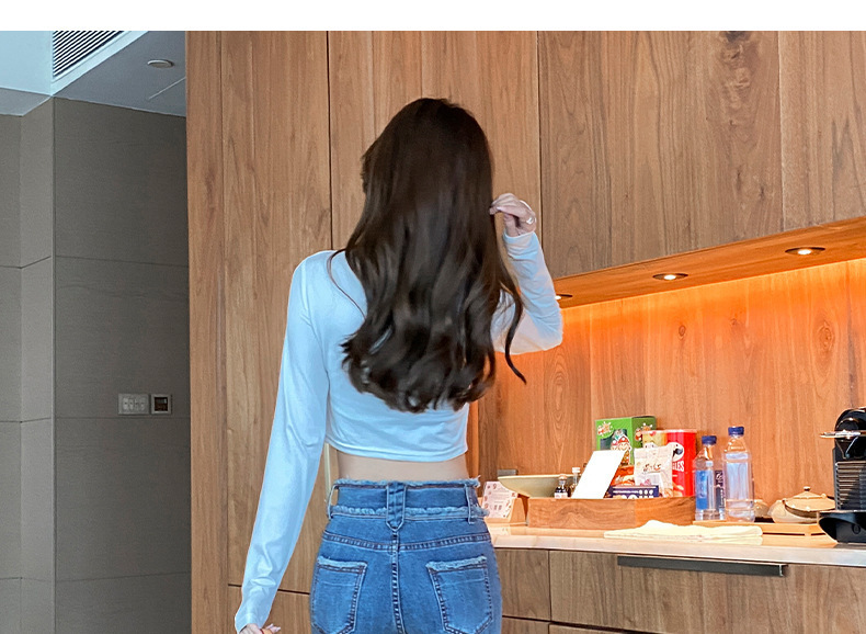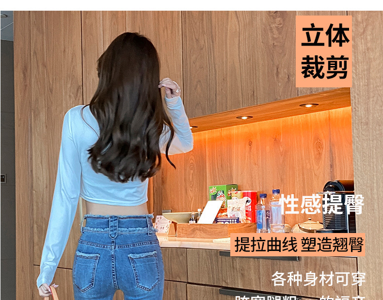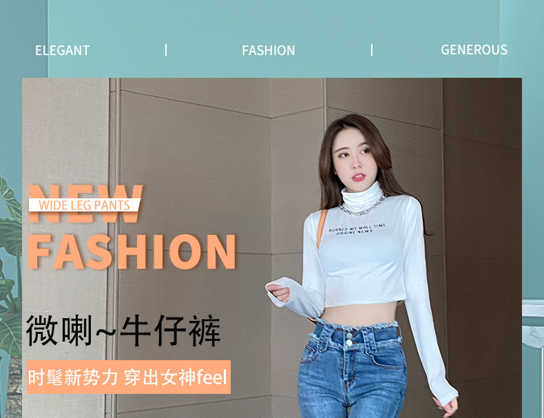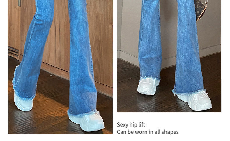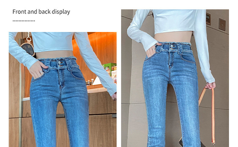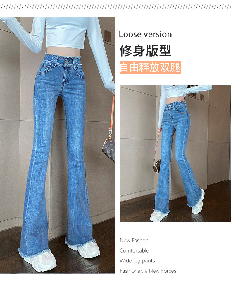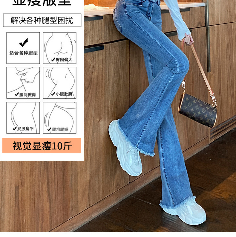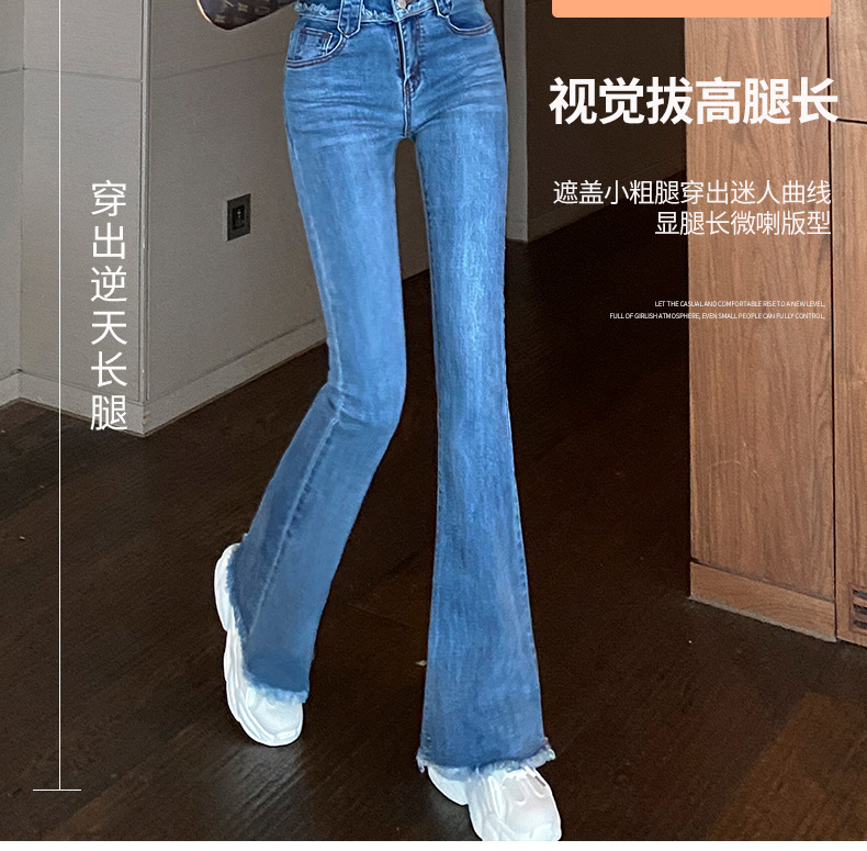 여성용 9부 마이크로 스파이시 데님 팬츠, 2025년 가을 신상품, 하이웨이스트 신축성 슬림핏 플레어 팬츠 (몸집 작은 여성용)스토어 가기