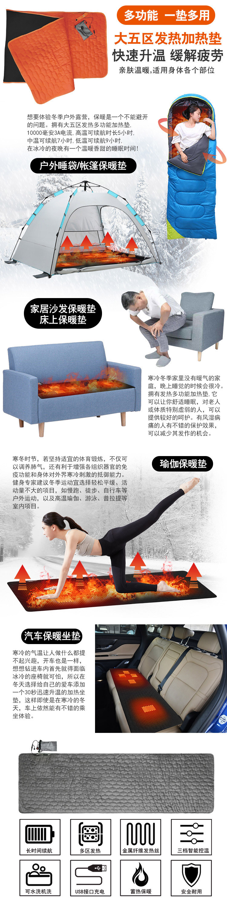 크로스보더 뉴 휴대용 가정용 야외 난방 수면 매트 공장 다이렉트 쿠션 면 미끄럼 방지 난방 요가 매트