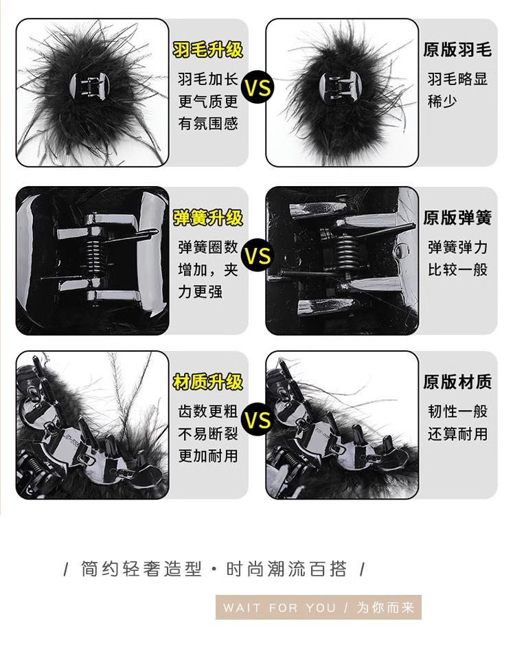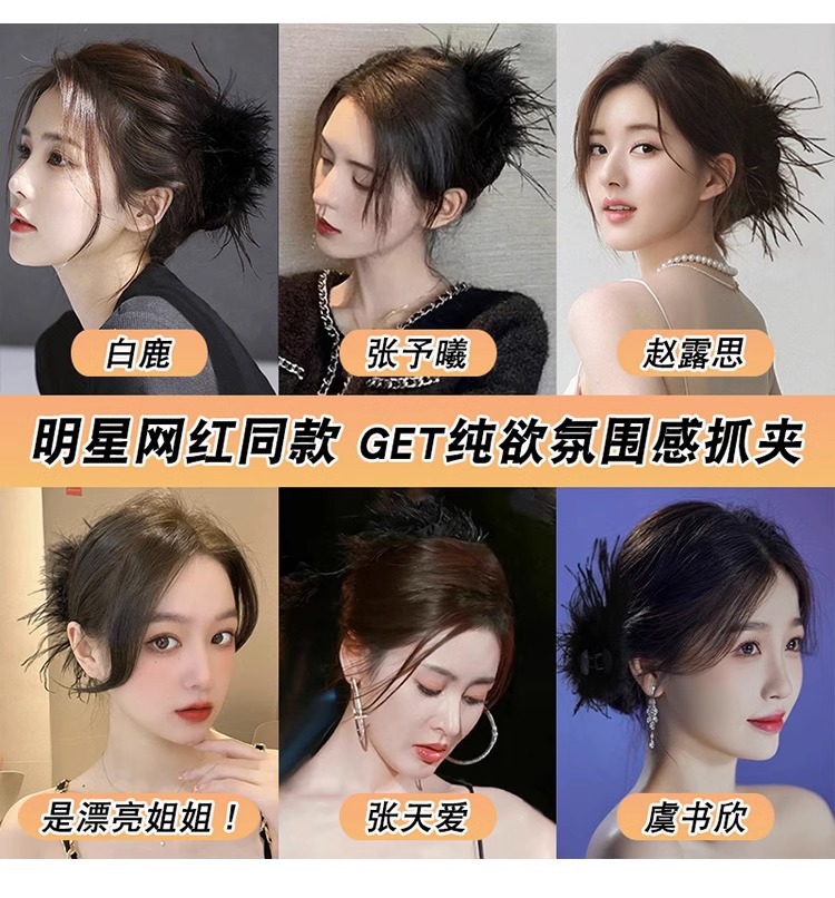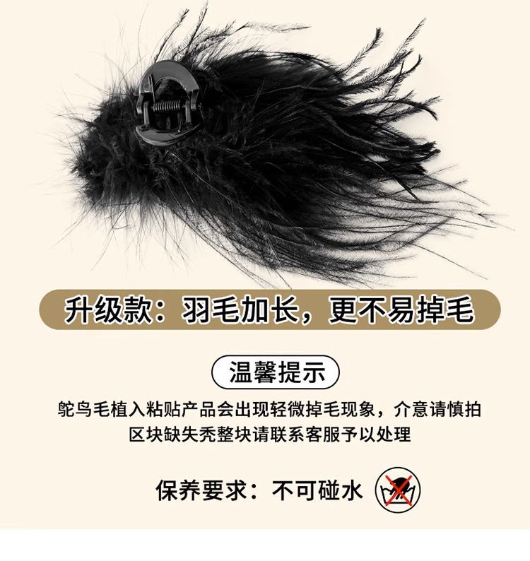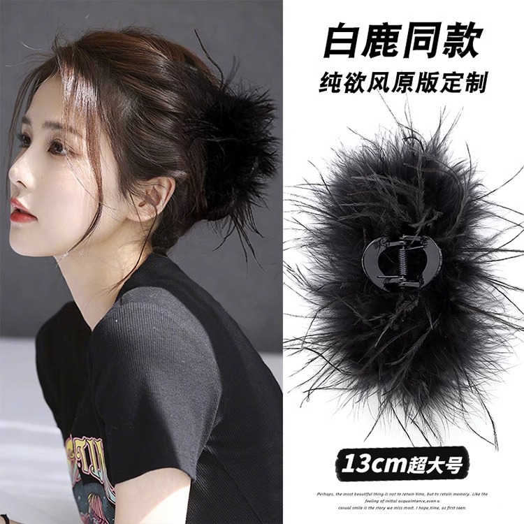 타조 플러시 블랙 깃털 대형 그랩 클립 여성용 헤드 하이 레벨 헤어 클립 모자 상어 클립 헤어 클립스토어 가기