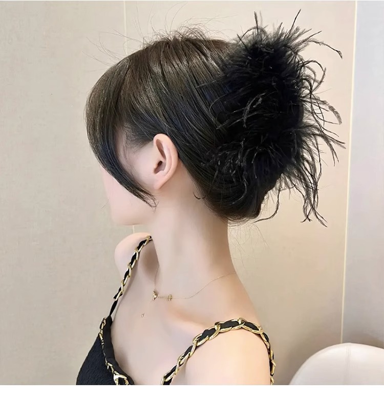 타조 플러시 블랙 깃털 대형 그랩 클립 여성용 헤드 하이 레벨 헤어 클립 모자 상어 클립 헤어 클립