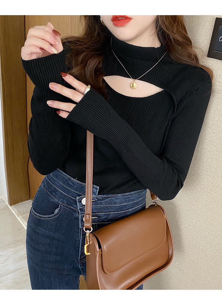 여성용 바닥 셔츠 디자인 2025 가을, 겨울 새로운 틈새 하프 터틀넥 스웨터 여성용 하이 엔드 미드 칼라 니트 탑