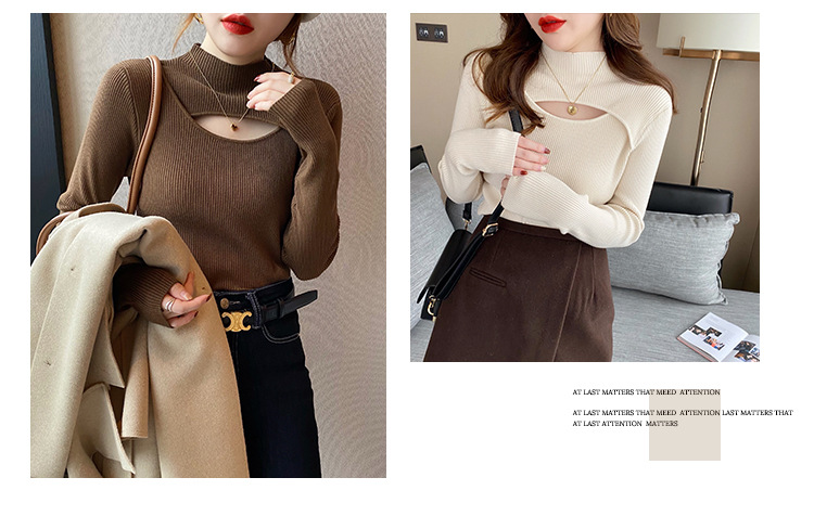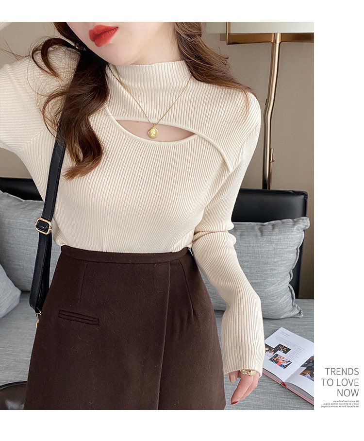 여성용 바닥 셔츠 디자인 2025 가을, 겨울 새로운 틈새 하프 터틀넥 스웨터 여성용 하이 엔드 미드 칼라 니트 탑스토어 가기