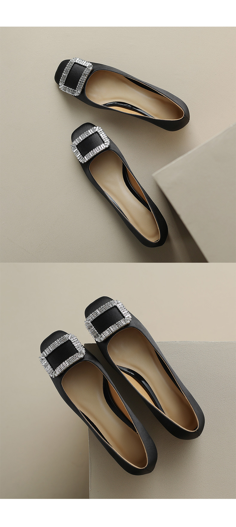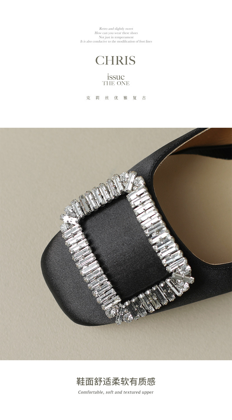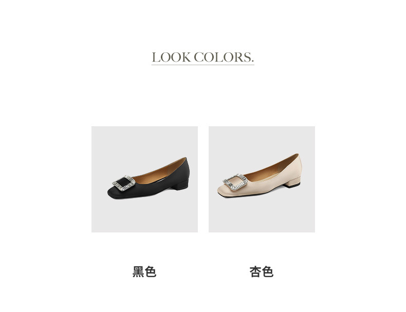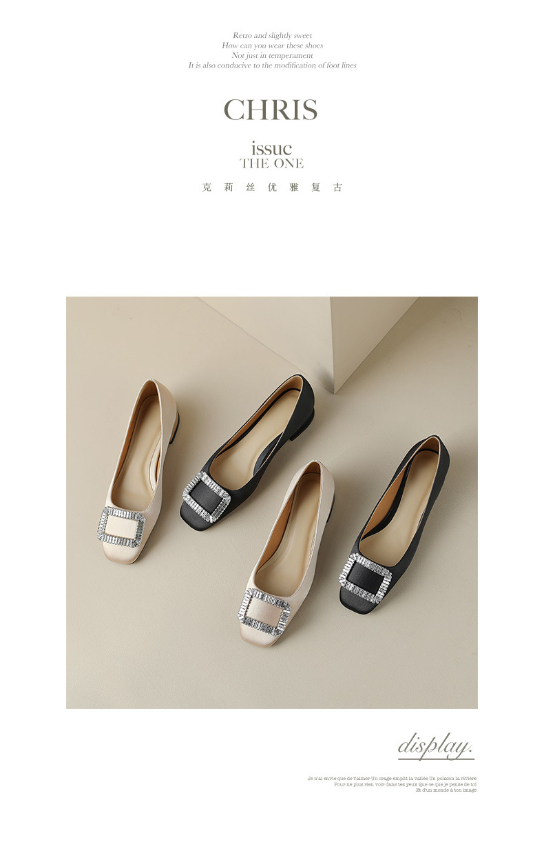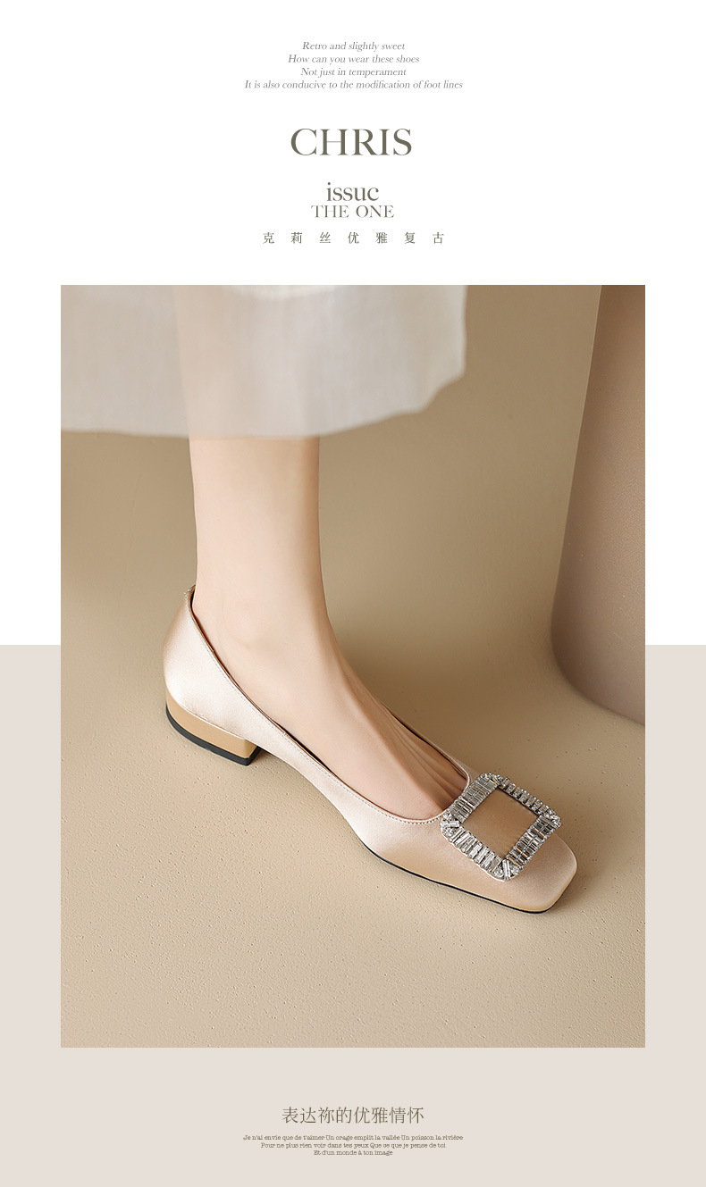 2023 새로운 봄과 가을 스퀘어 토 얕은 입 싱글 슈즈 여성용 미들 힐 두꺼운 힐 디자인 틈새 소프트 하단 스퀘어 버클 모든 매치스토어 가기