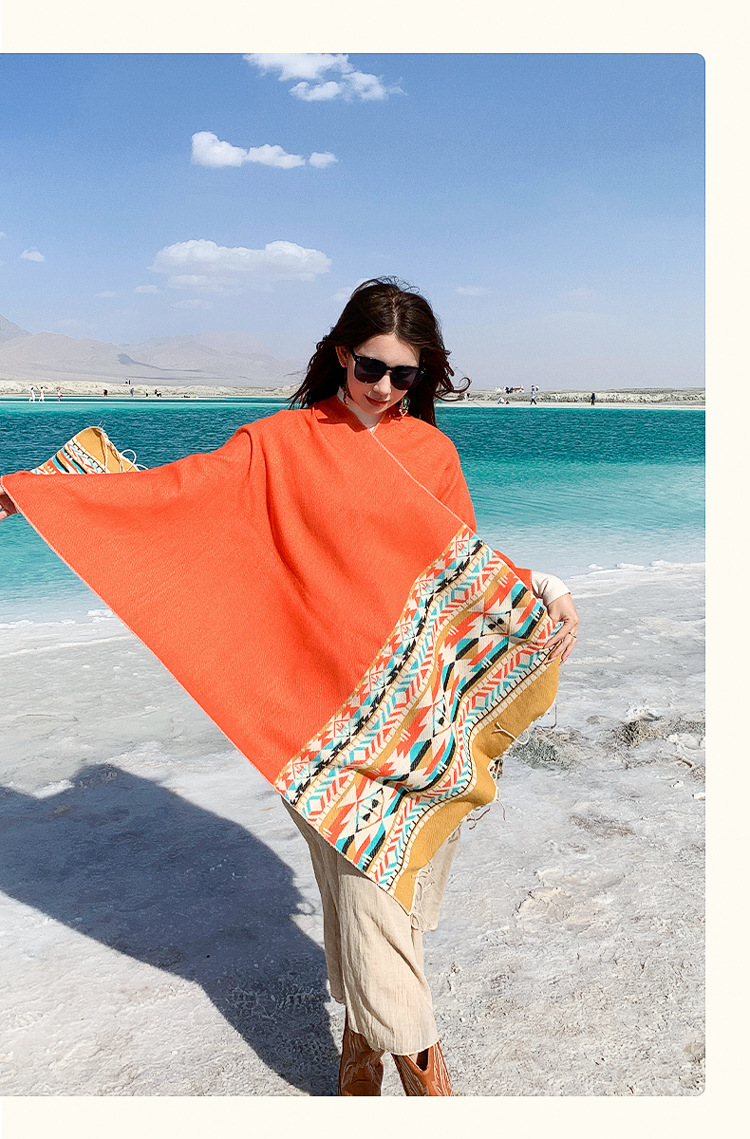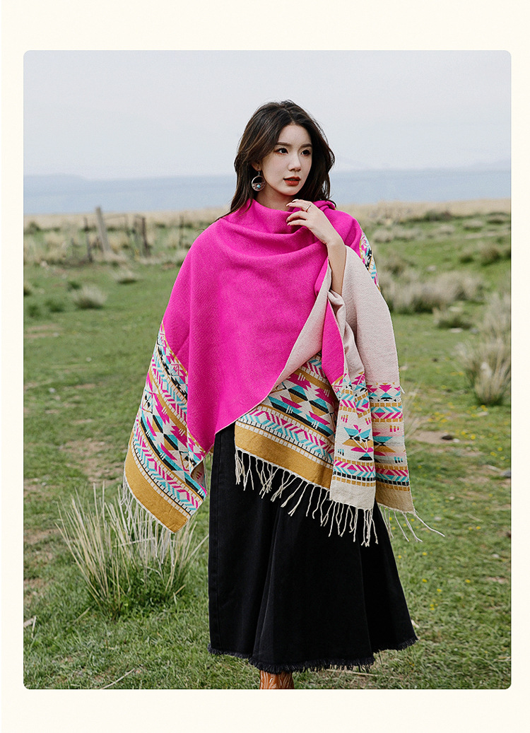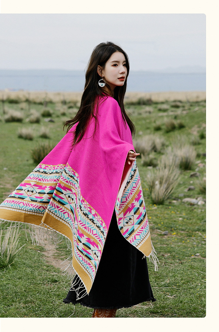 에스닉 스타일 모조 캐시미어 숄 두꺼운 케이프 착용 따뜻한 윈난 여행 스카프 신장 촬영 초원 망토 여성