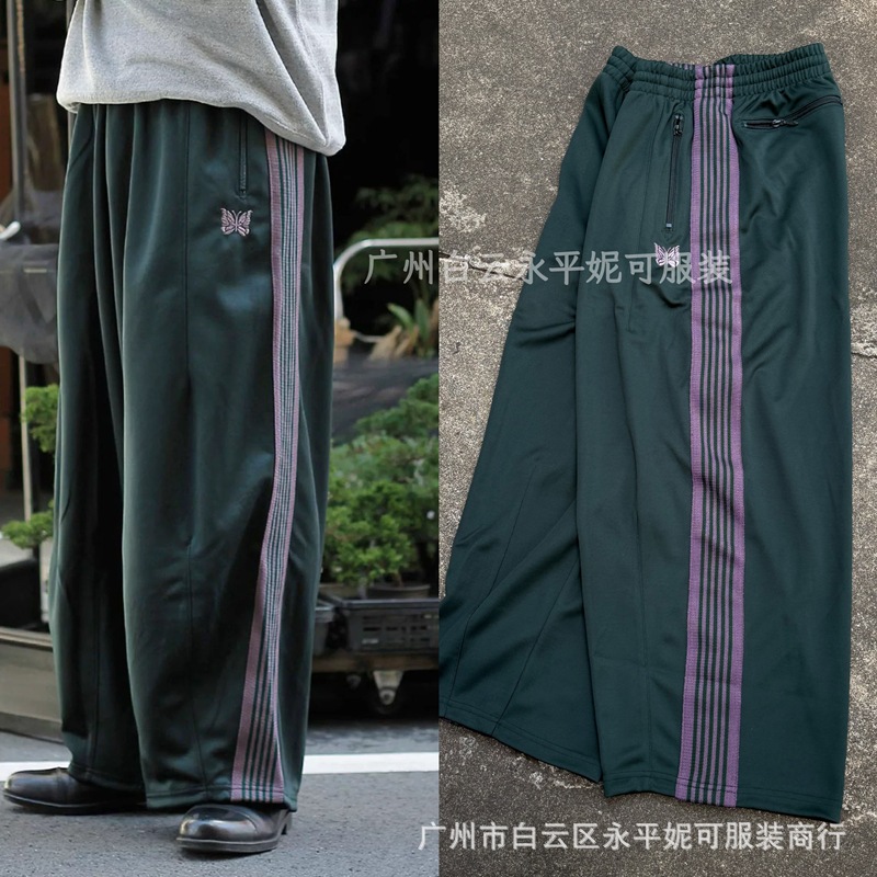 바늘 트랙 바지 나비 자수 와이드 레그 팬츠 일본식 트렌디 브랜드 느슨한 스포츠 바지 남성과 여성을위한스토어 가기