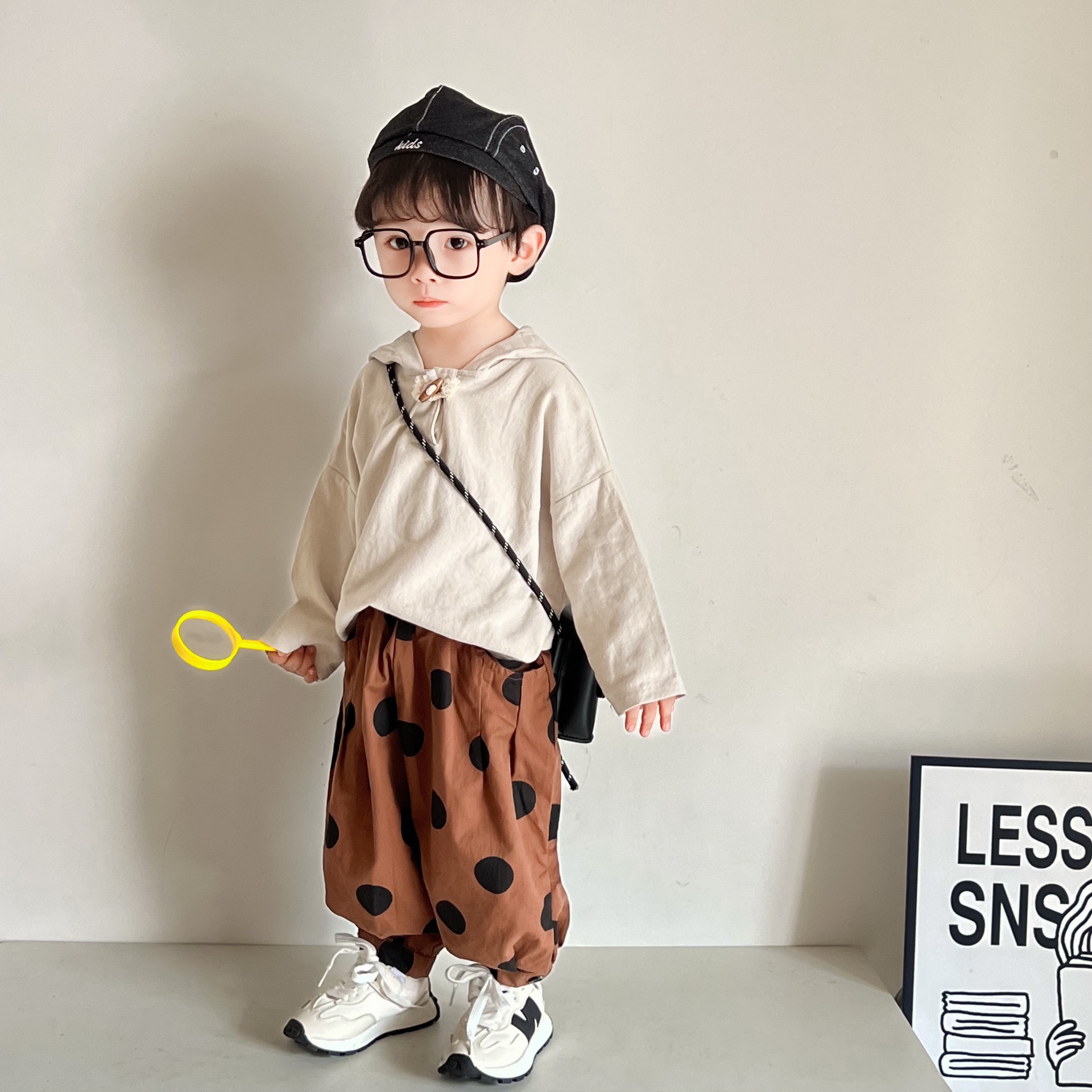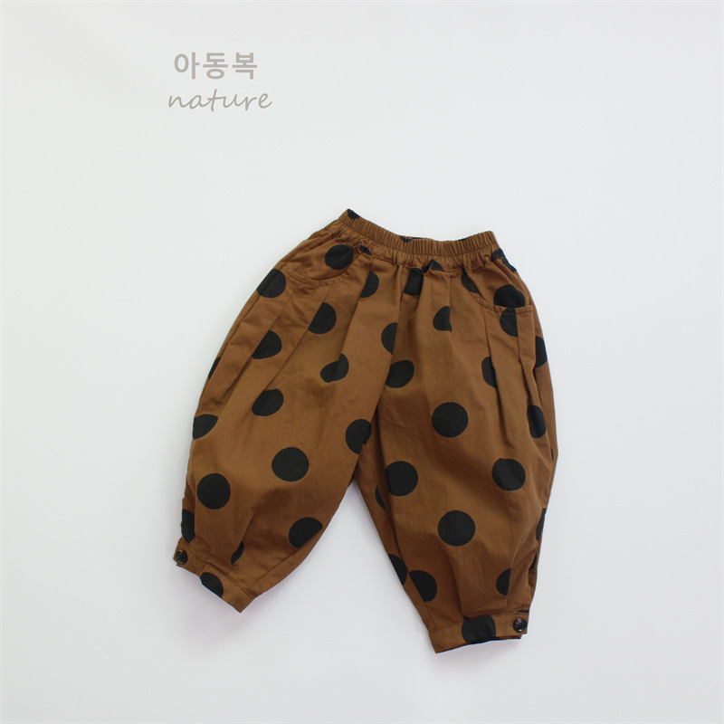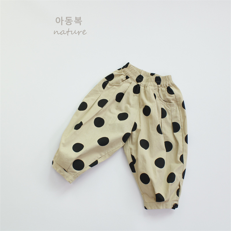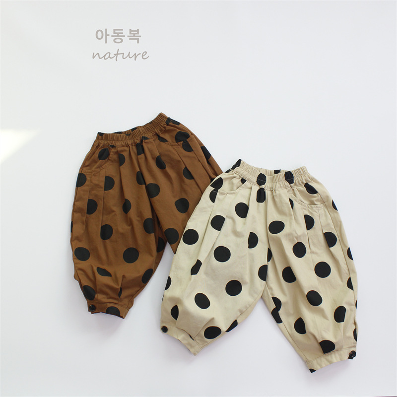 2024 년 초가을, 어린이 의류 빅 웨이브 포인트 발가락 디자인 소년 소녀들을위한 느슨한 바지를 한국 새로운 어린이 팬티