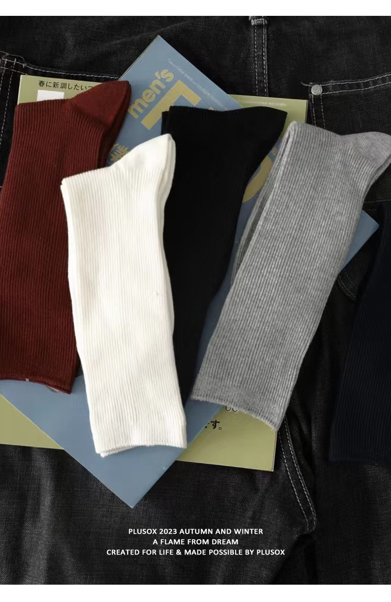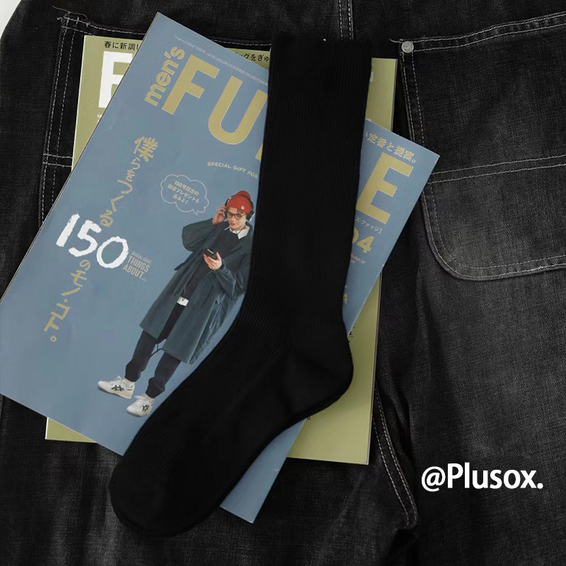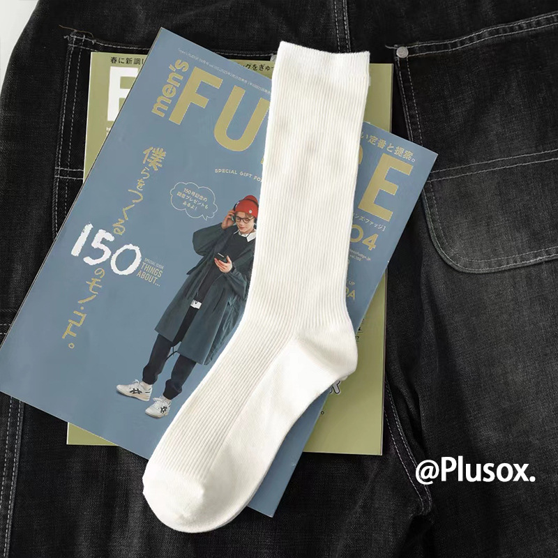 plusox 트렌디 브랜드 ins 일본 복고풍 양말 남성 순면 중반 송아지 가을, 겨울 스타킹 땀 흡수 여성 파일 양말스토어 가기