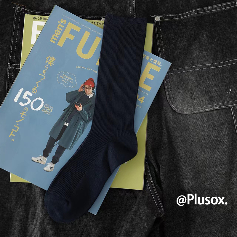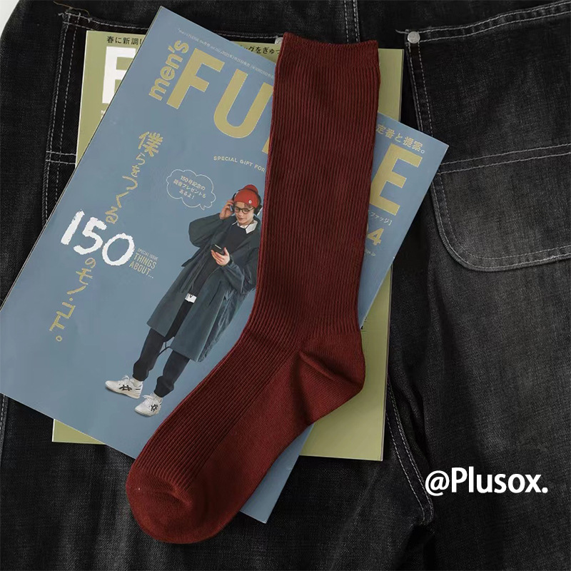 plusox 트렌디 브랜드 ins 일본 복고풍 양말 남성 순면 중반 송아지 가을, 겨울 스타킹 땀 흡수 여성 파일 양말