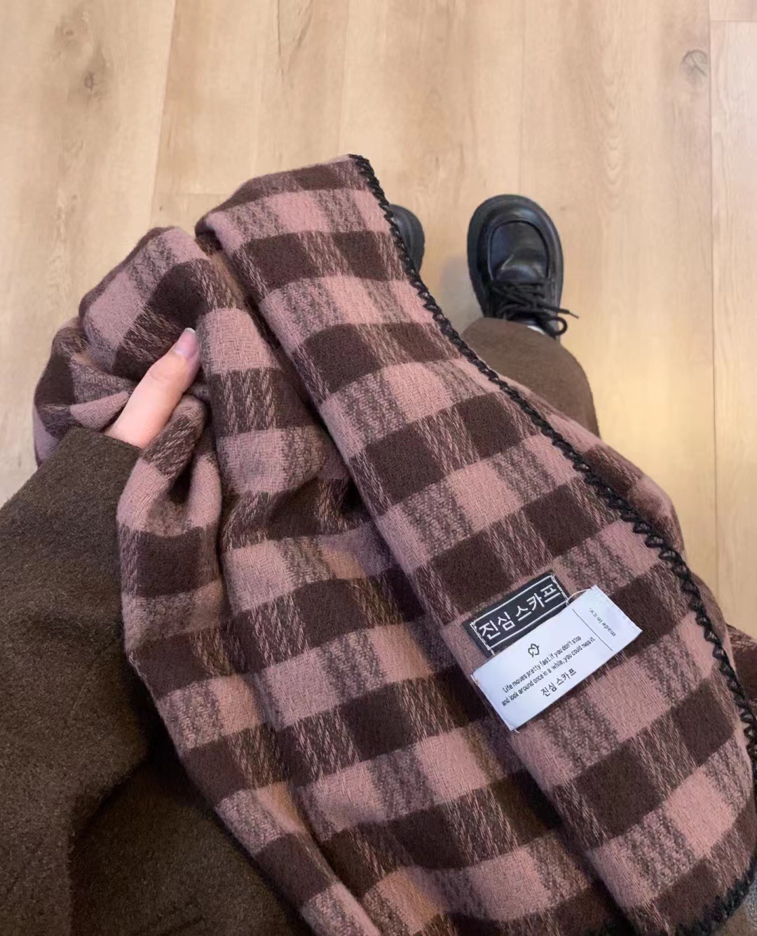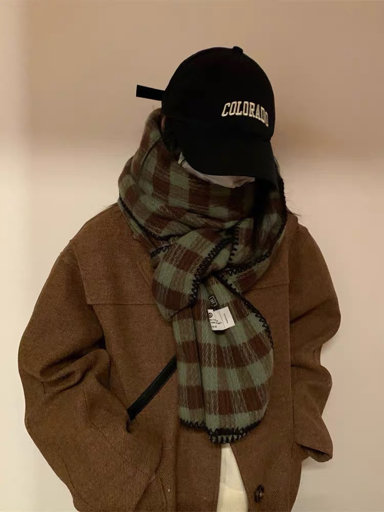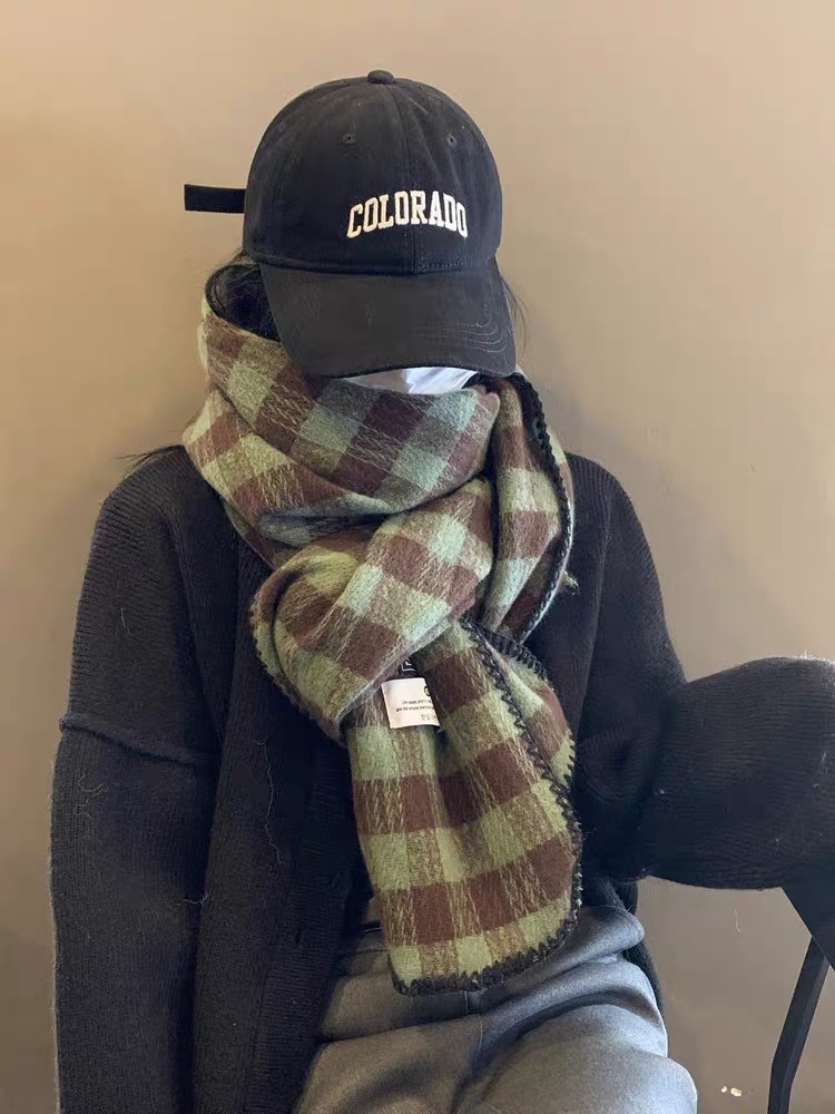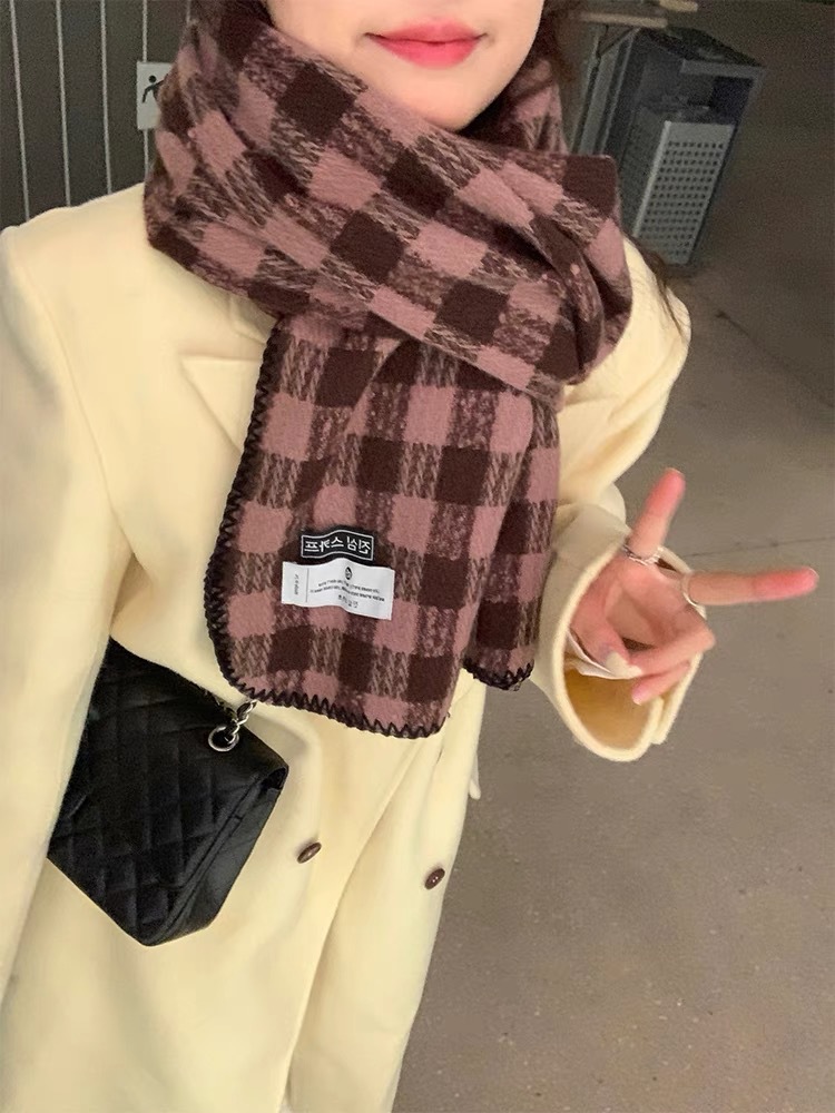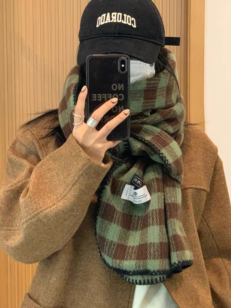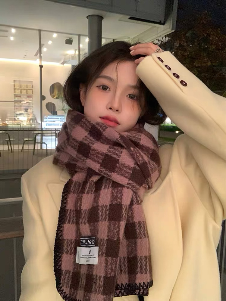 2023 새로운 빈티지 격자 무늬 스카프 여성용 겨울 두꺼운 한국식 학생 숄 화이트 분위기 따뜻한 목스토어 가기