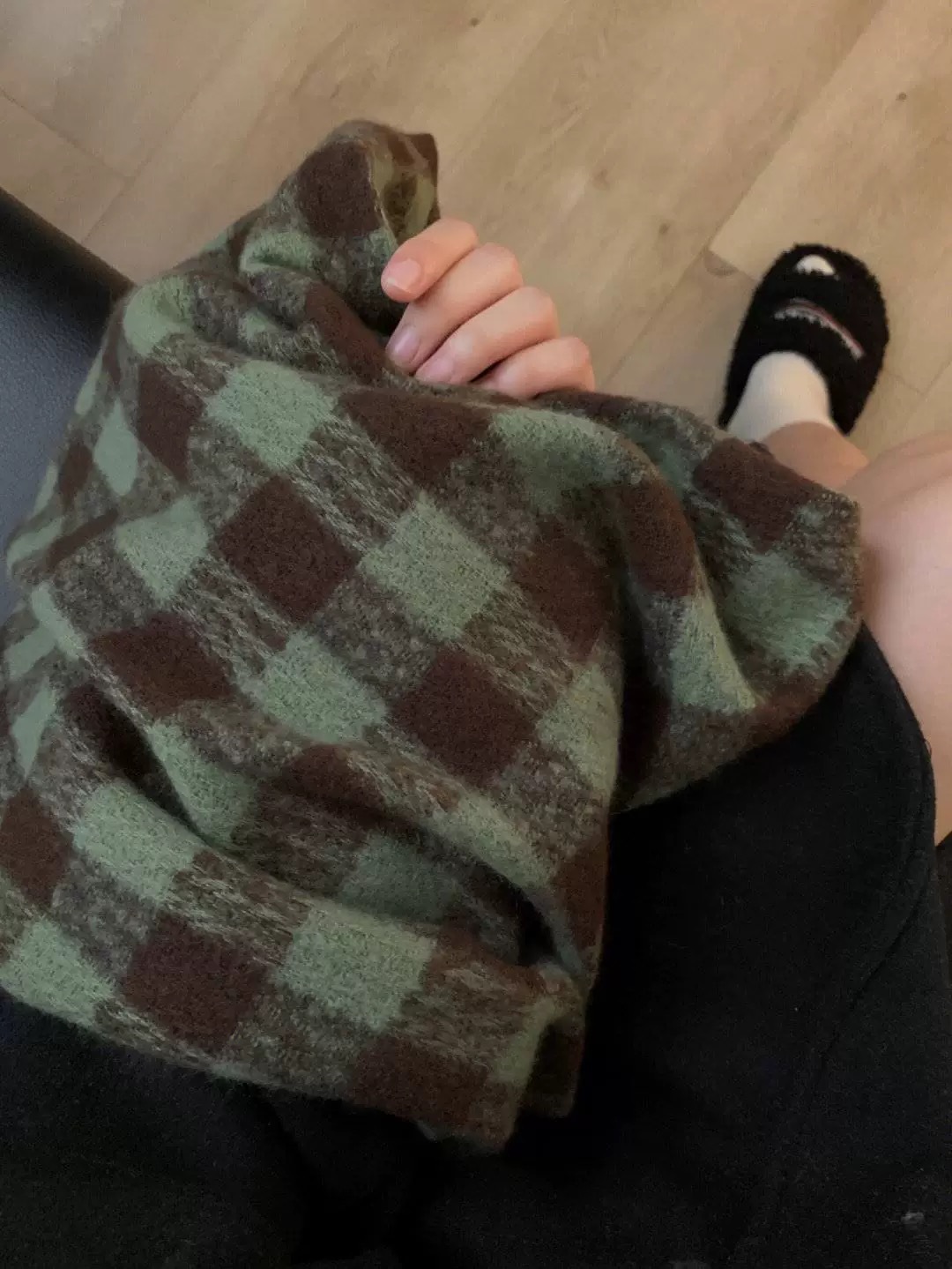 • 트림과 빈티지 격자 무늬 녹색 다크 브라운