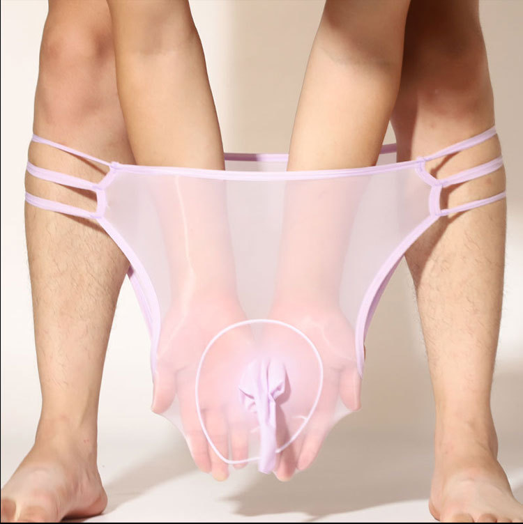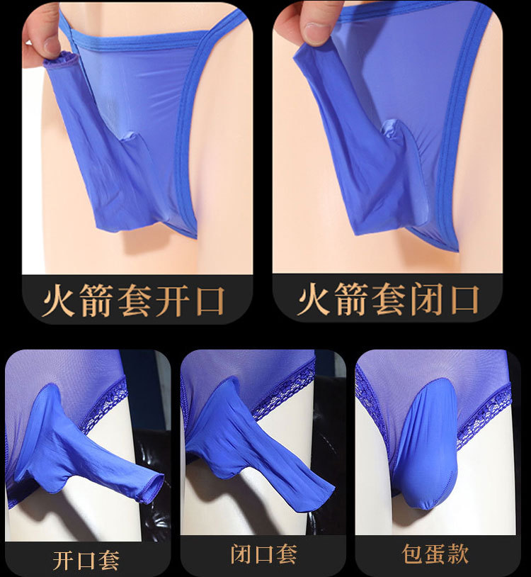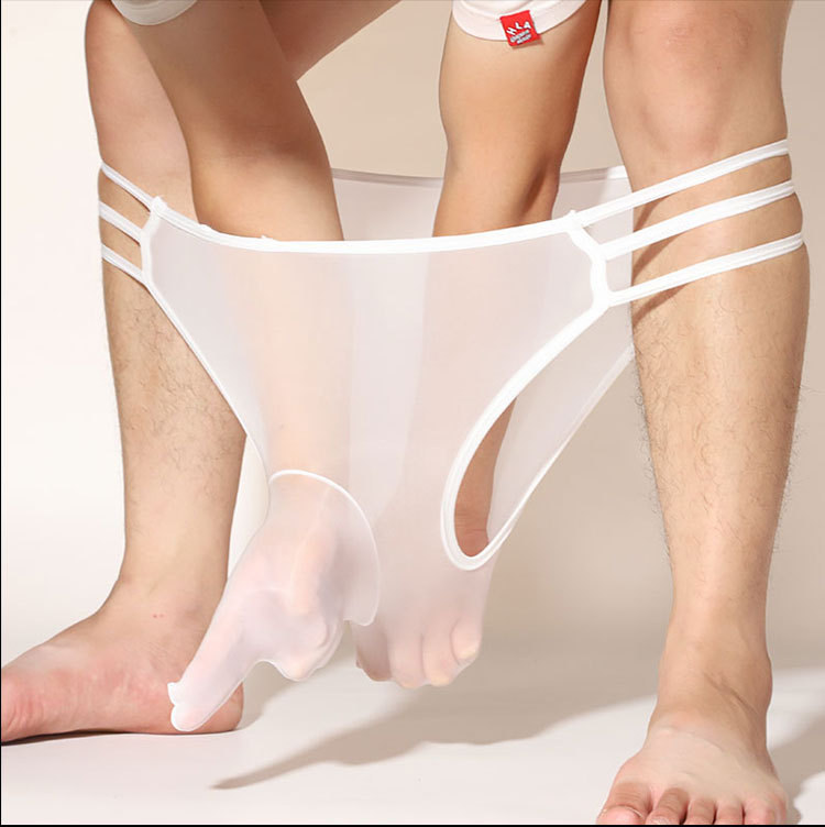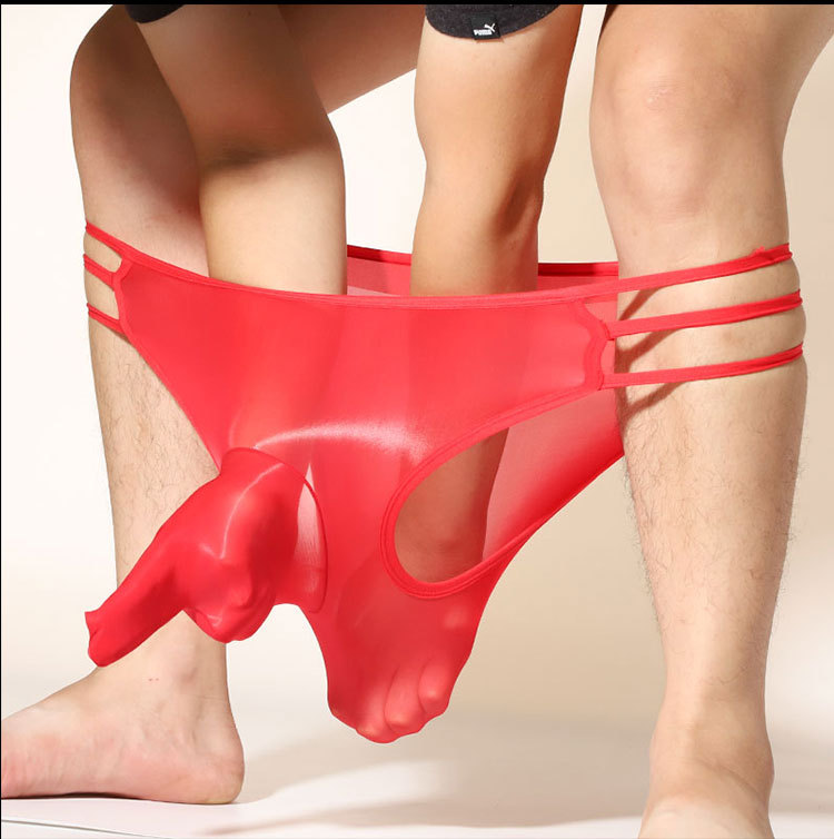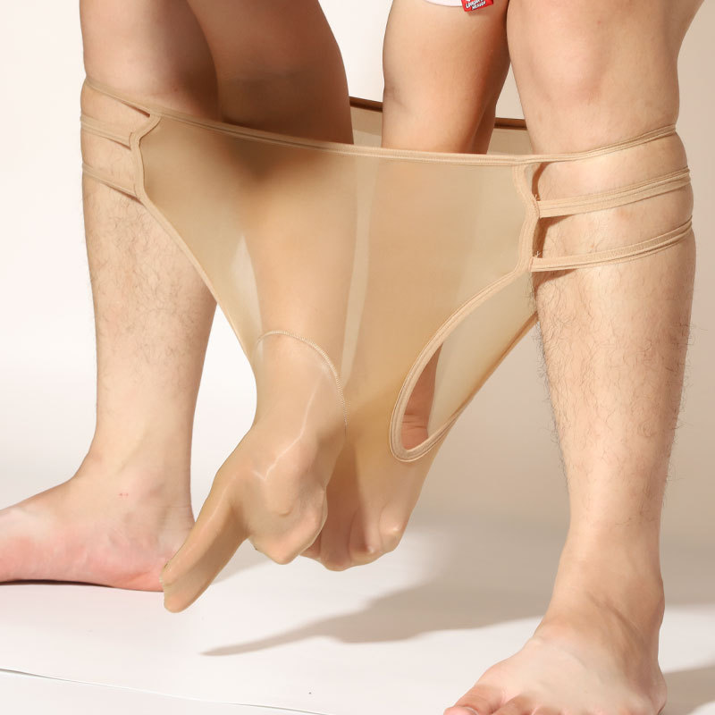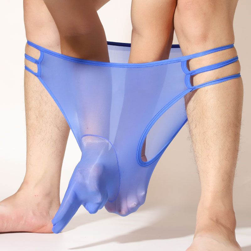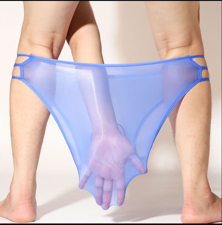 남자의 전체 투명 코끼리 코 반바지 섹시한 오일 밝은 실크 슬라이드 초박형 중공 통기성 총알 분리 팬티스토어 가기