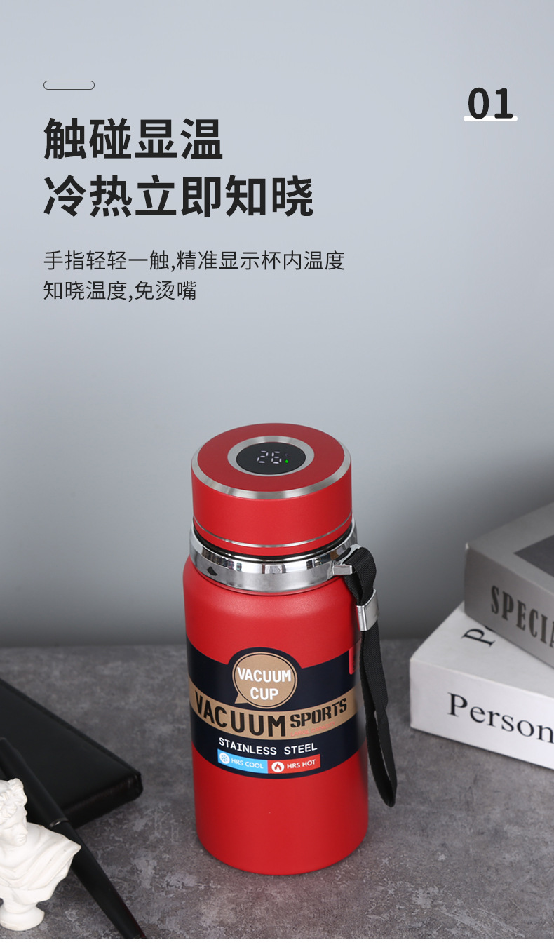 도매 대용량 보온병 316 스테인리스 스마트 온도 표시 스포츠 물병 휴대용 비즈니스 선물 물컵