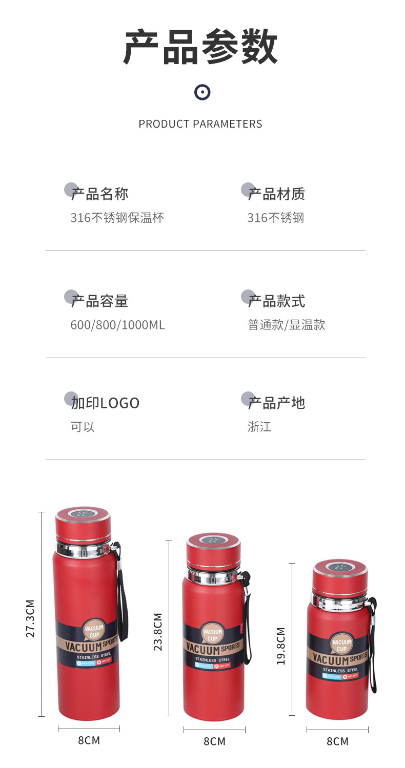 도매 대용량 보온병 316 스테인리스 스마트 온도 표시 스포츠 물병 휴대용 비즈니스 선물 물컵스토어 가기