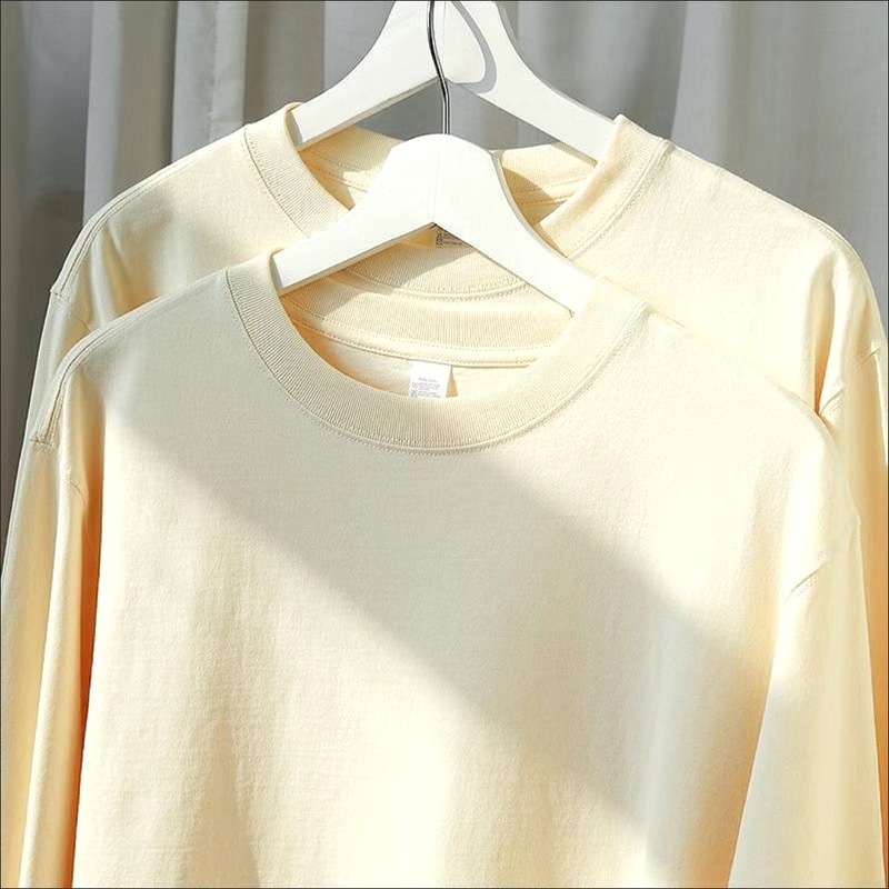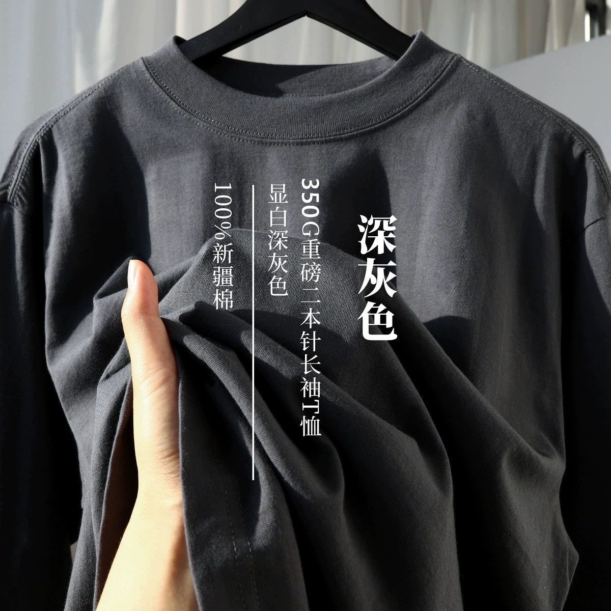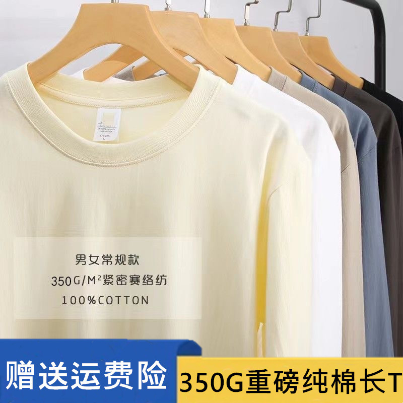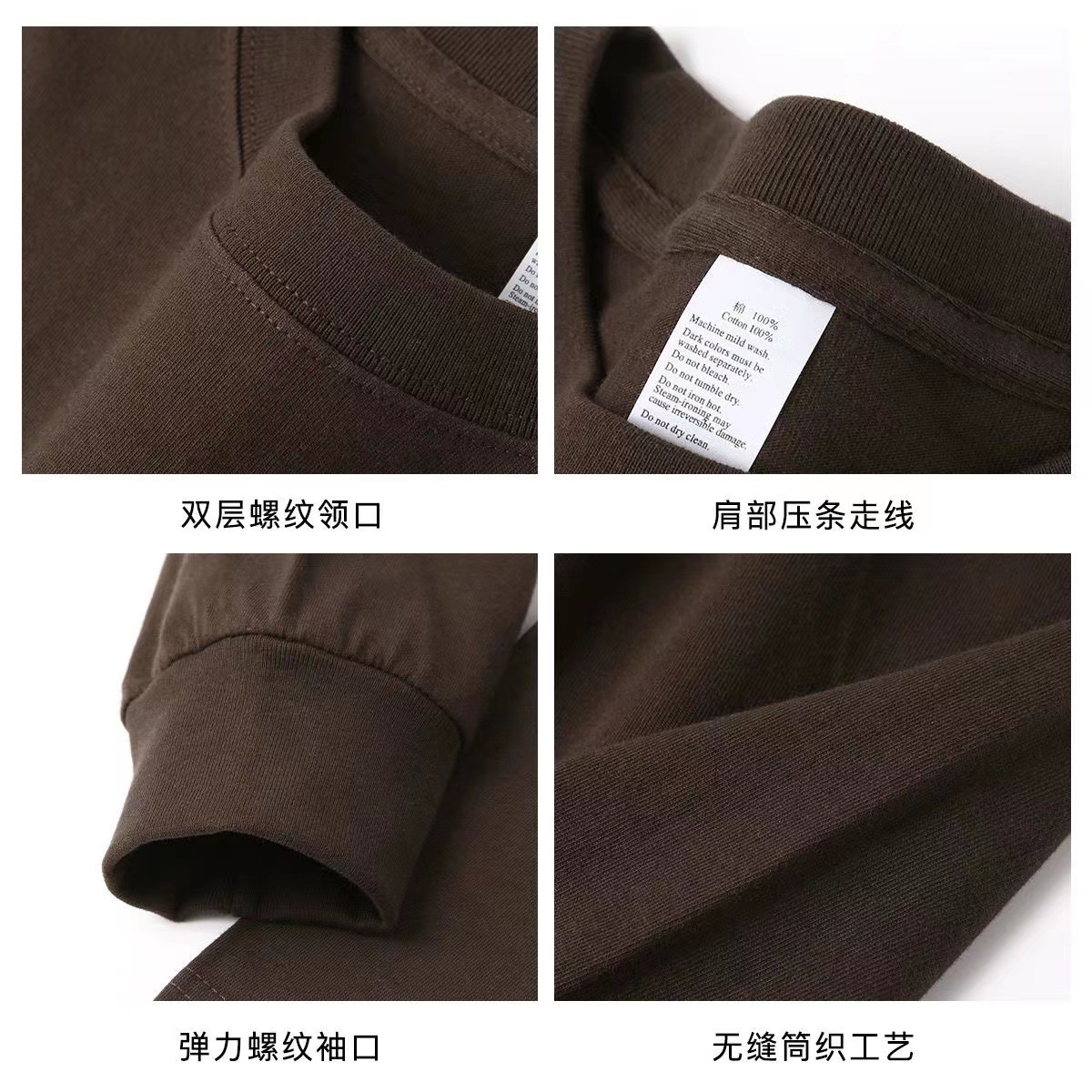 버건디 350g 무거운 면 긴 소매 티셔츠 남성과 여성의 느슨한 탑 솔리드 컬러 크루넥 스웨터 베이스 셔츠스토어 가기