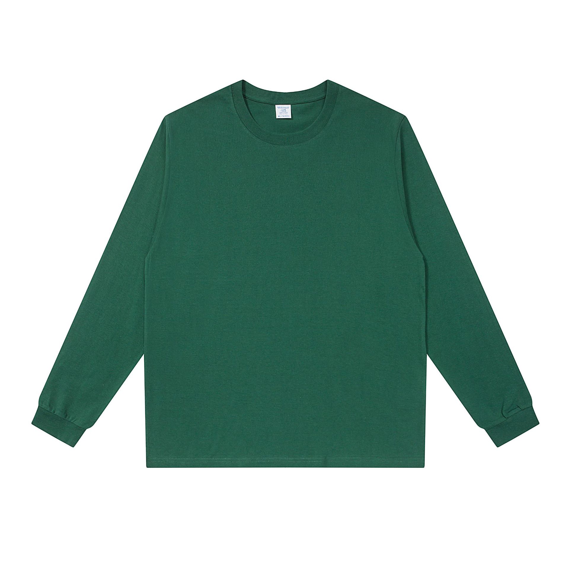 버건디 350g 무거운 면 긴 소매 티셔츠 남성과 여성의 느슨한 탑 솔리드 컬러 크루넥 스웨터 베이스 셔츠