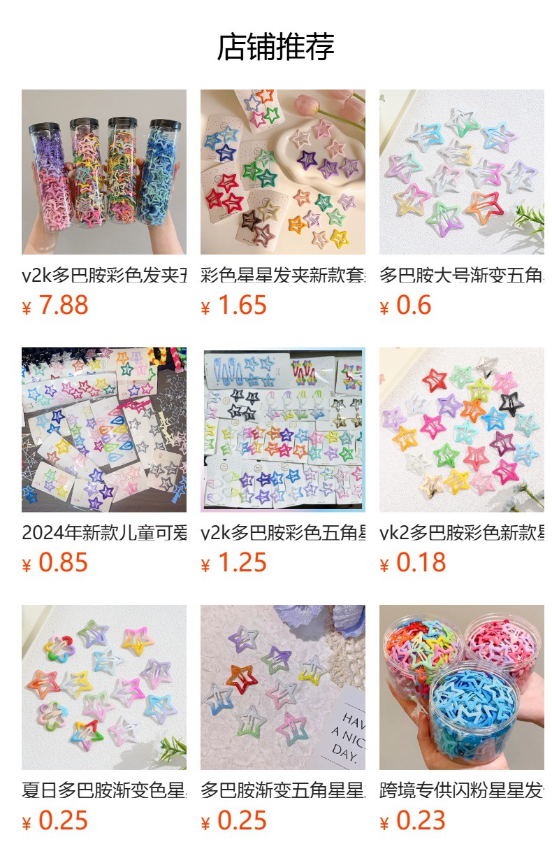 빛나는 귀여운 별 머리핀 도파민 사이버 연예인 형광 5 점 별 클립 일본 달콤한 BBB 깨진 머리핀스토어 가기