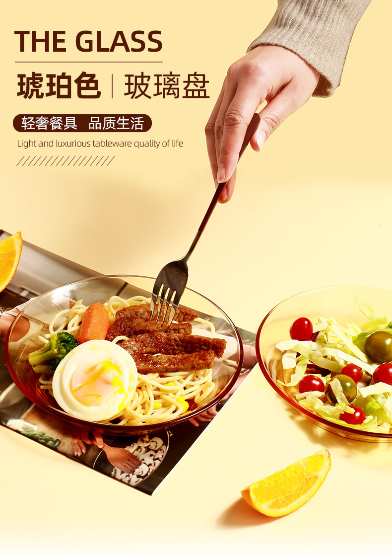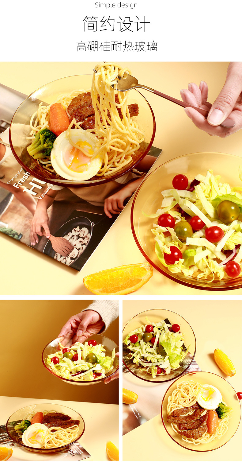 고붕규산 유리판 호박색 식기 요리 고온 내성 오븐 전자 레인지 가정용 접시 스프 접시 도매스토어 가기
