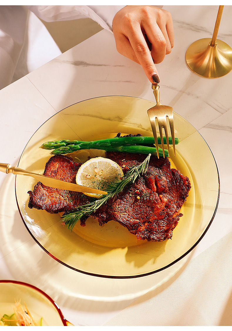 고붕규산 유리판 호박색 식기 요리 고온 내성 오븐 전자 레인지 가정용 접시 스프 접시 도매