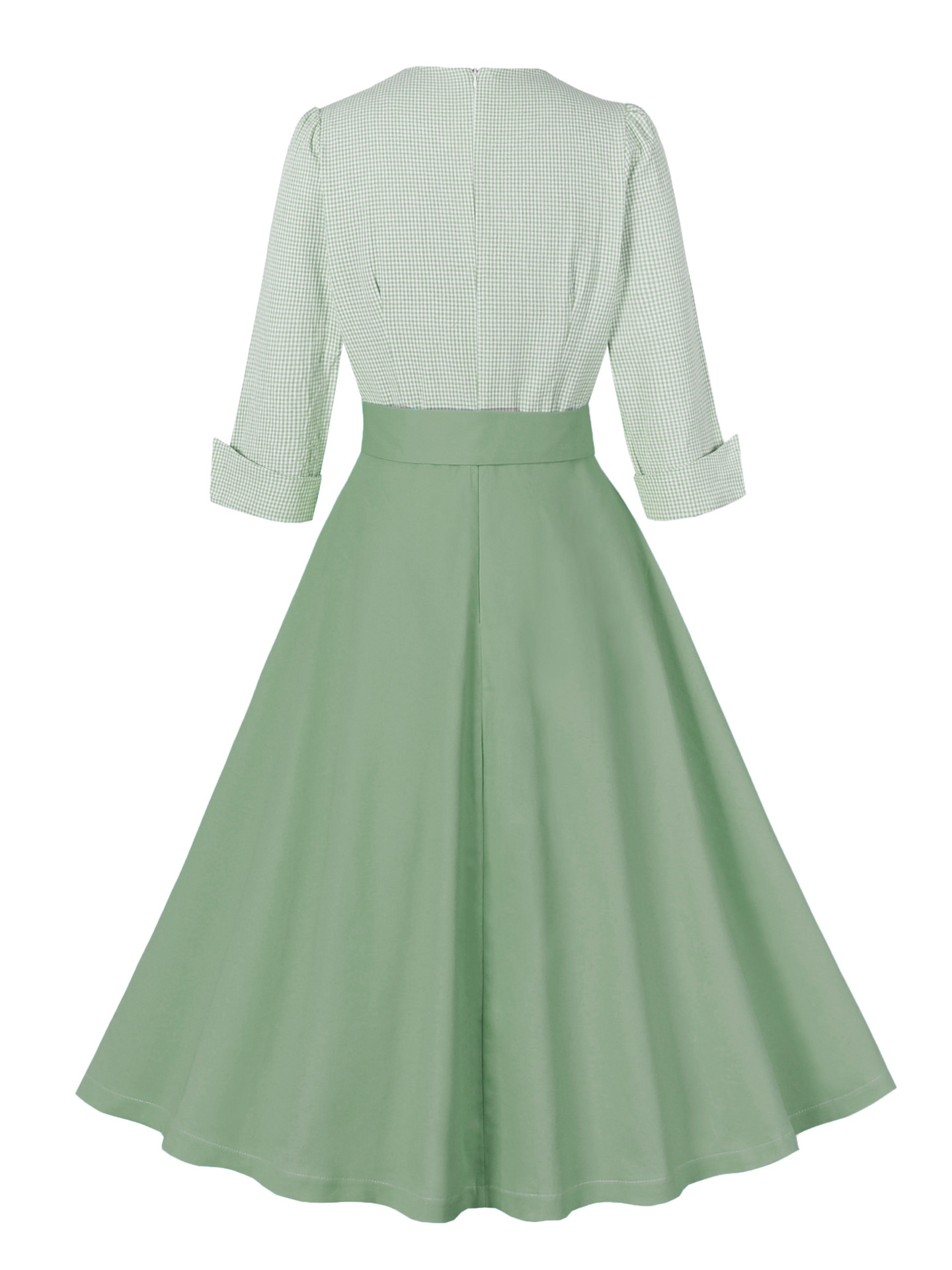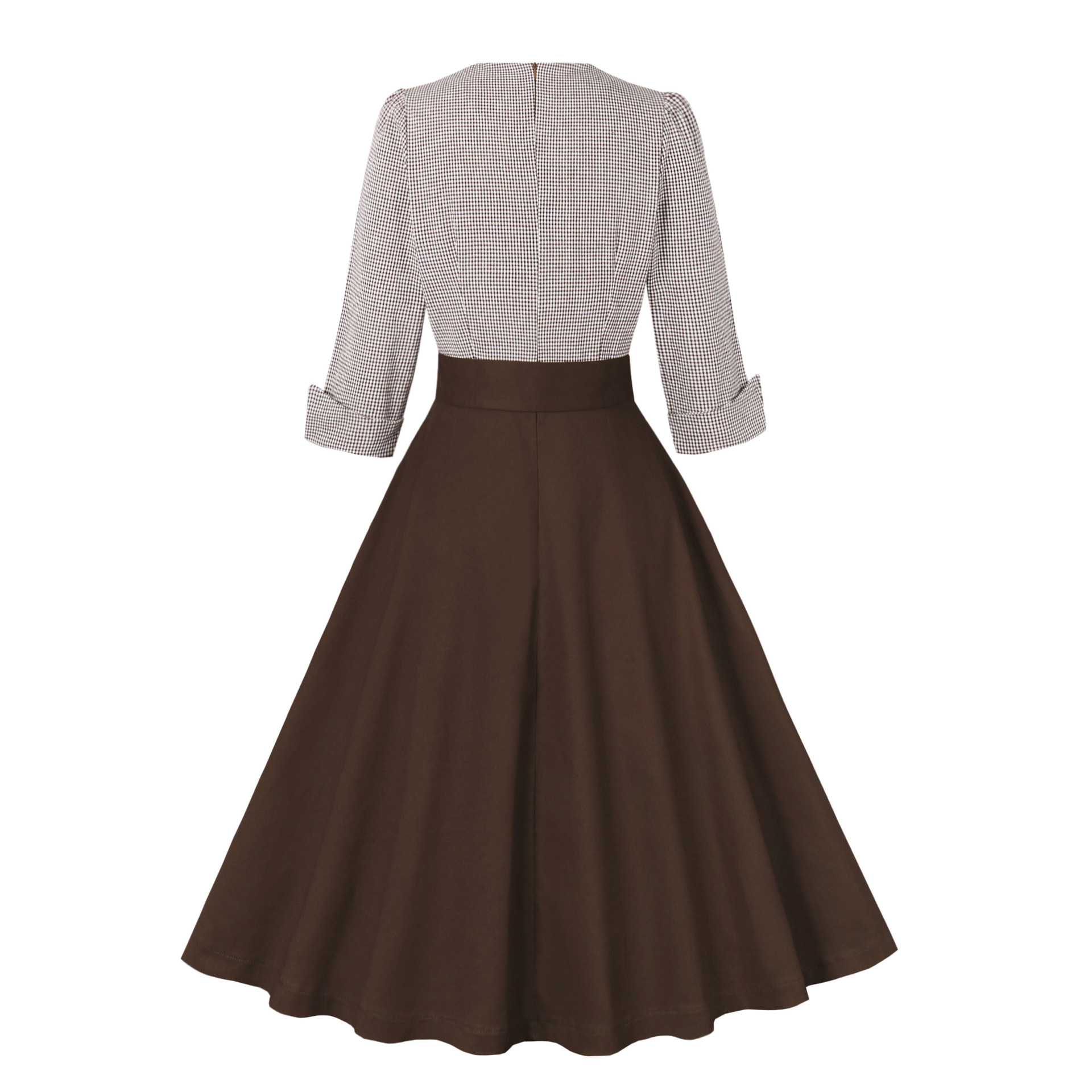 아마존 크로스 보더 햅번 스타일 격자 무늬 블랙 꽉 허리 7 점 슬리브 복고풍 우아한 대형 진자 여성의 원피스 면스토어 가기