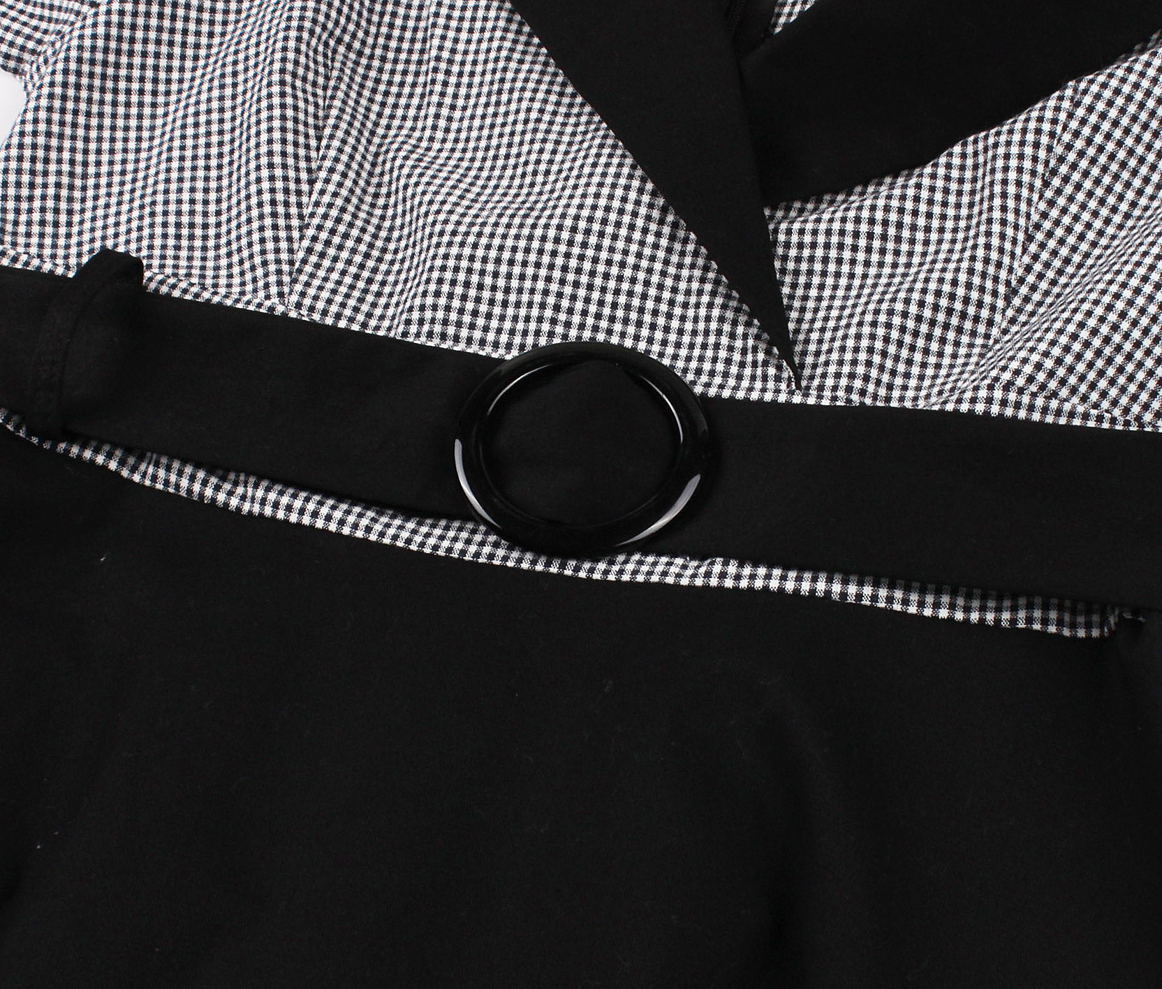 아마존 크로스 보더 햅번 스타일 격자 무늬 블랙 꽉 허리 7 점 슬리브 복고풍 우아한 대형 진자 여성의 원피스 면