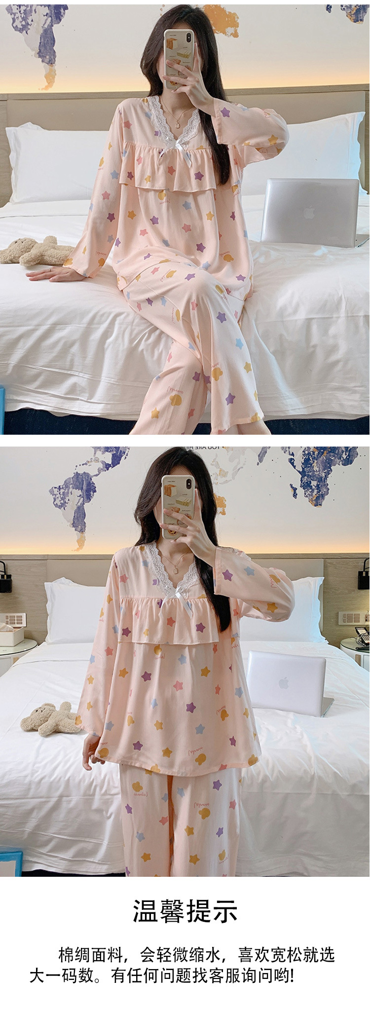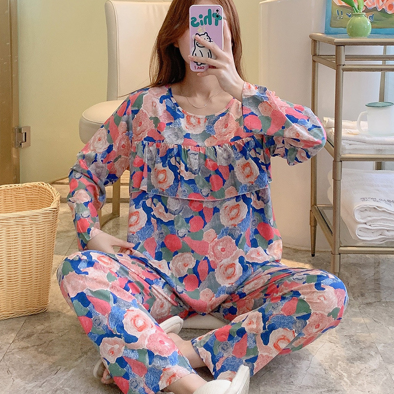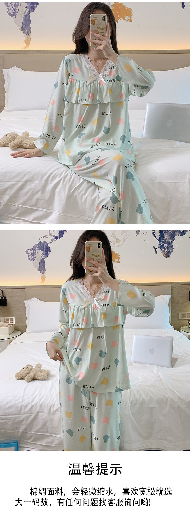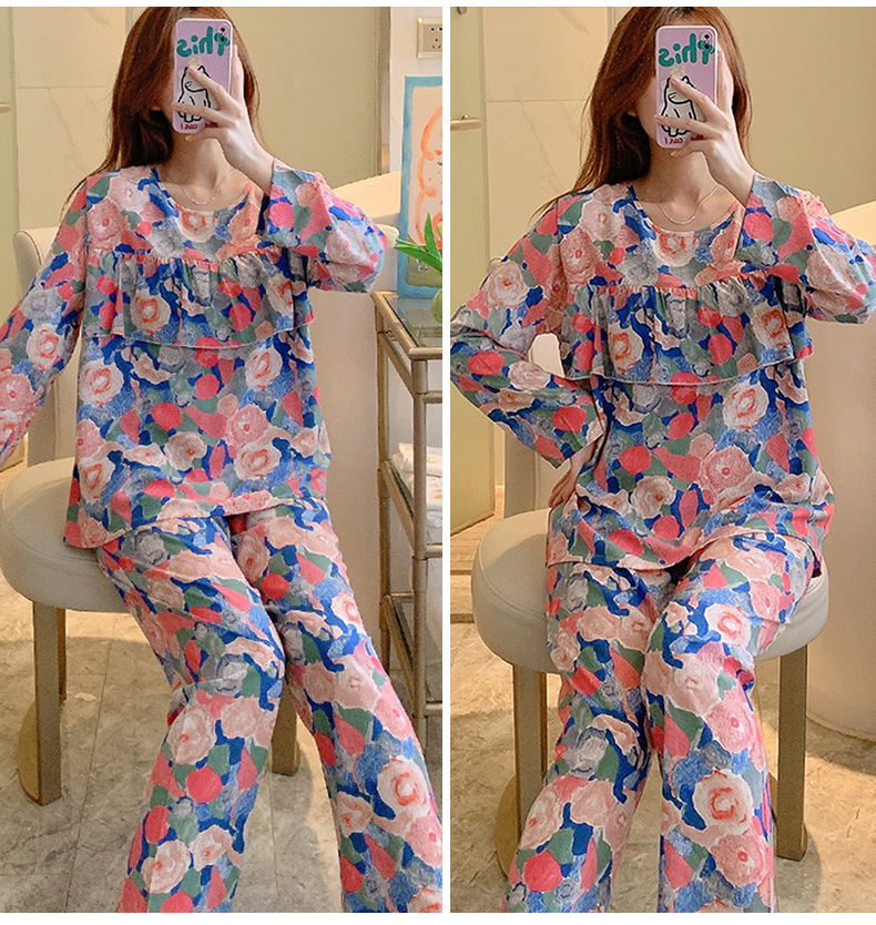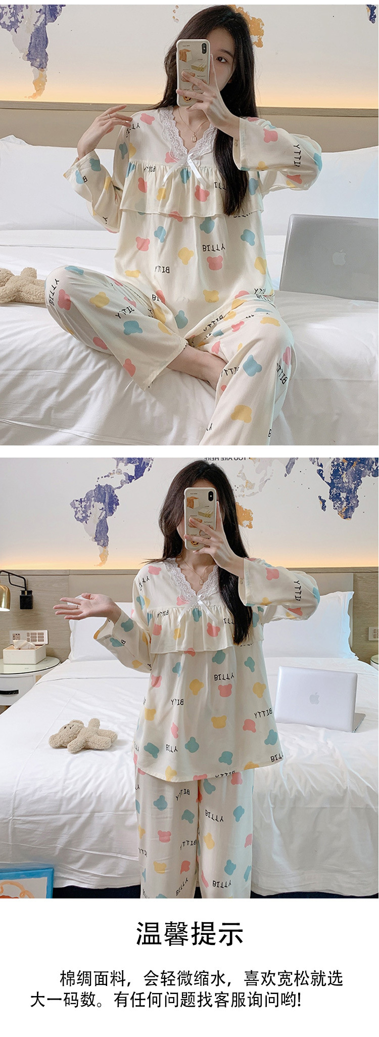 새로운 소녀의 안티 범프 풀오버 긴팔 얇은 라운드 넥 잠옷 세트 달콤한 인쇄 면 실크 가정 옷 잠옷스토어 가기