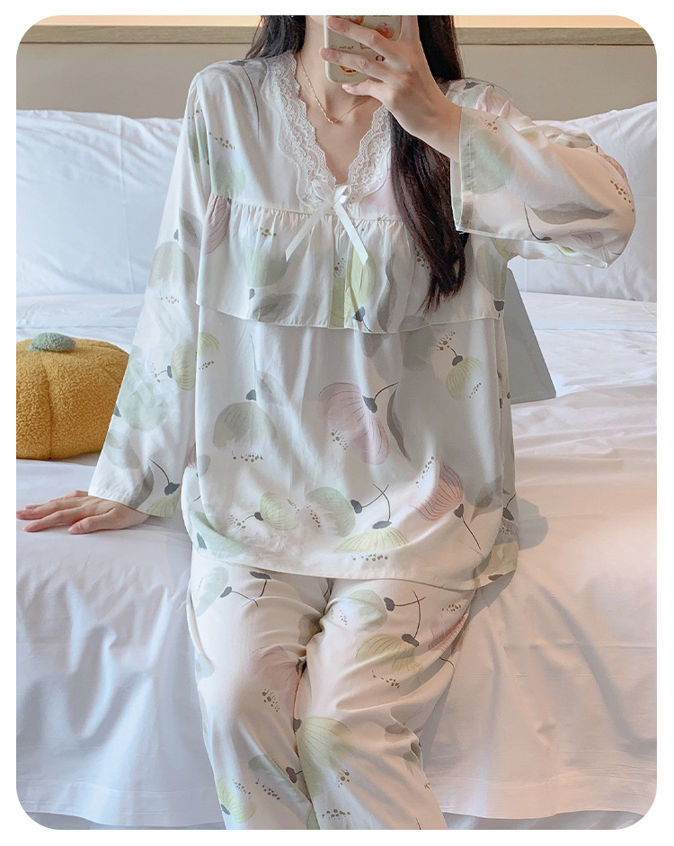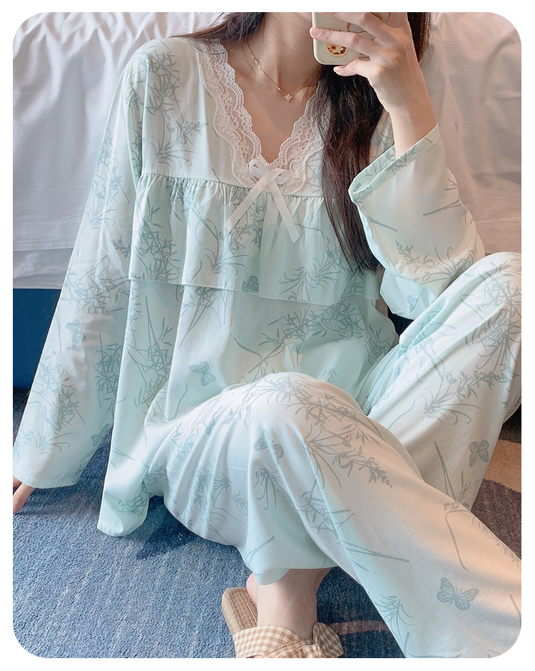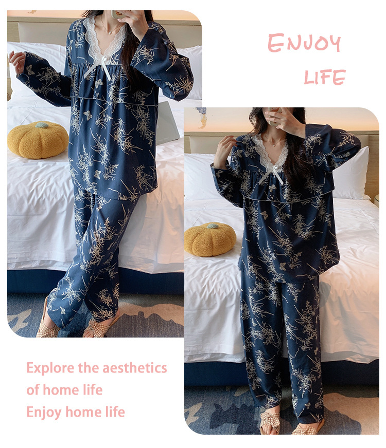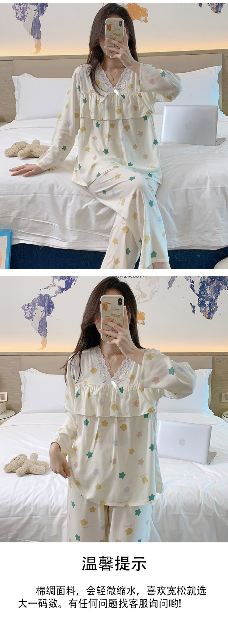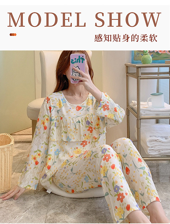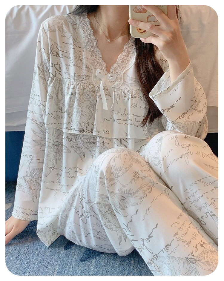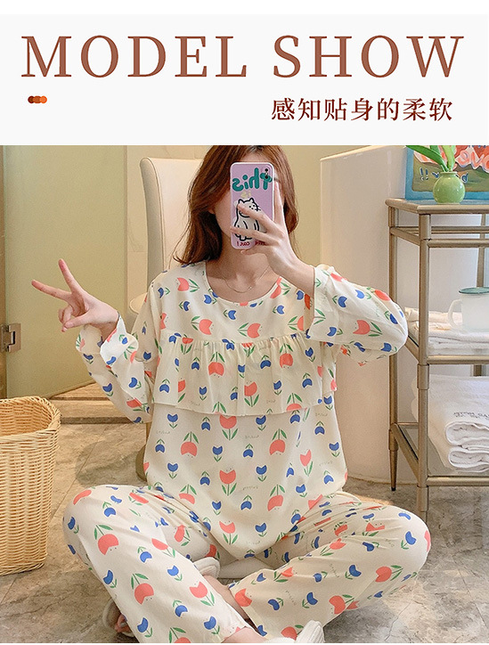 새로운 소녀의 안티 범프 풀오버 긴팔 얇은 라운드 넥 잠옷 세트 달콤한 인쇄 면 실크 가정 옷 잠옷스토어 가기