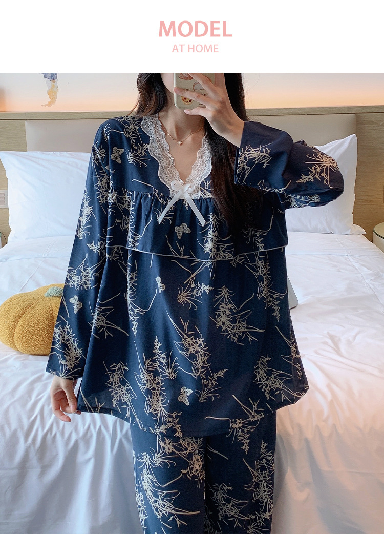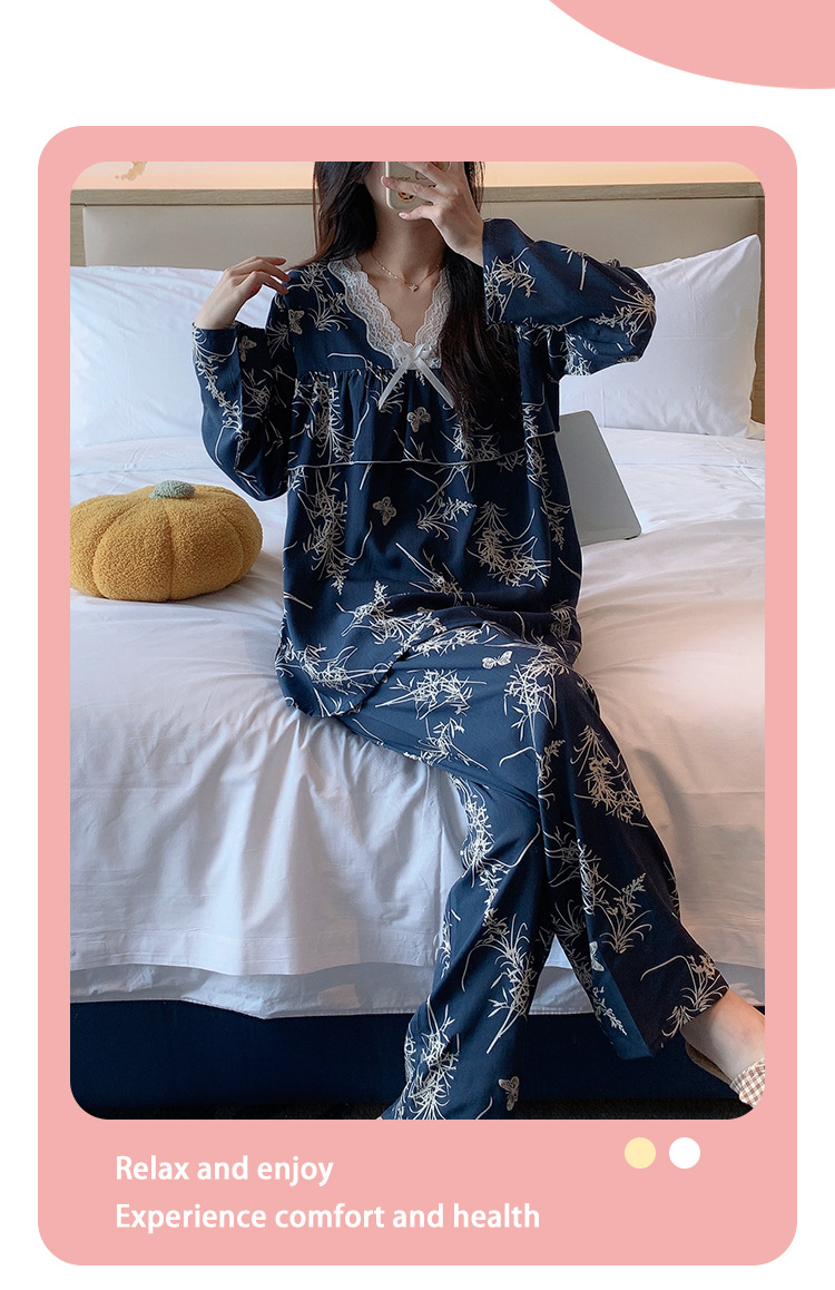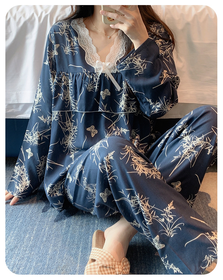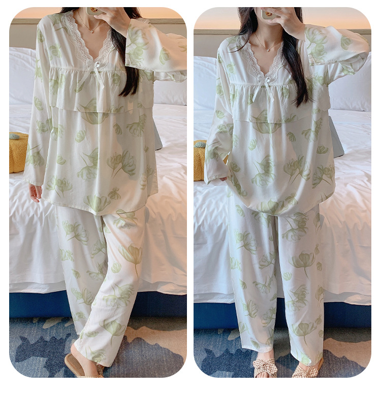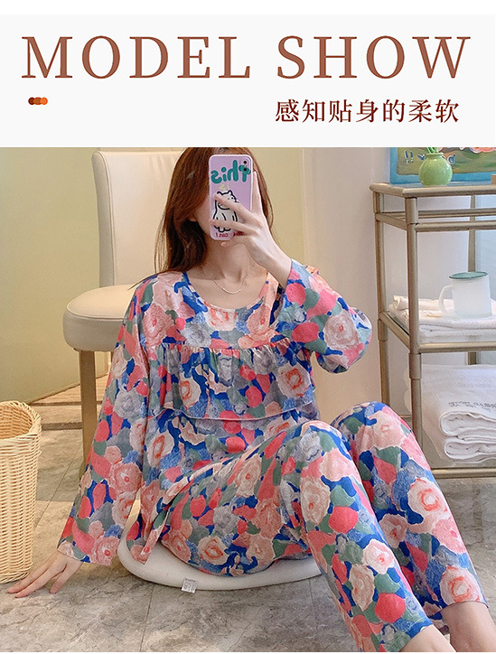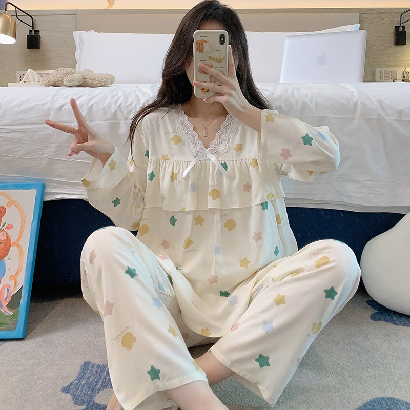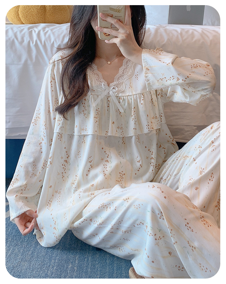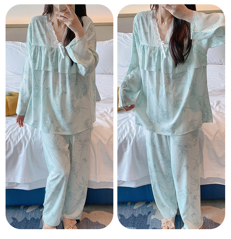 새로운 소녀의 안티 범프 풀오버 긴팔 얇은 라운드 넥 잠옷 세트 달콤한 인쇄 면 실크 가정 옷 잠옷스토어 가기