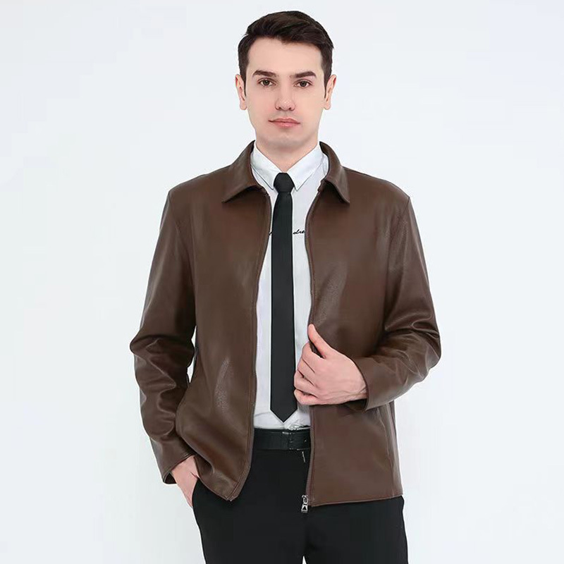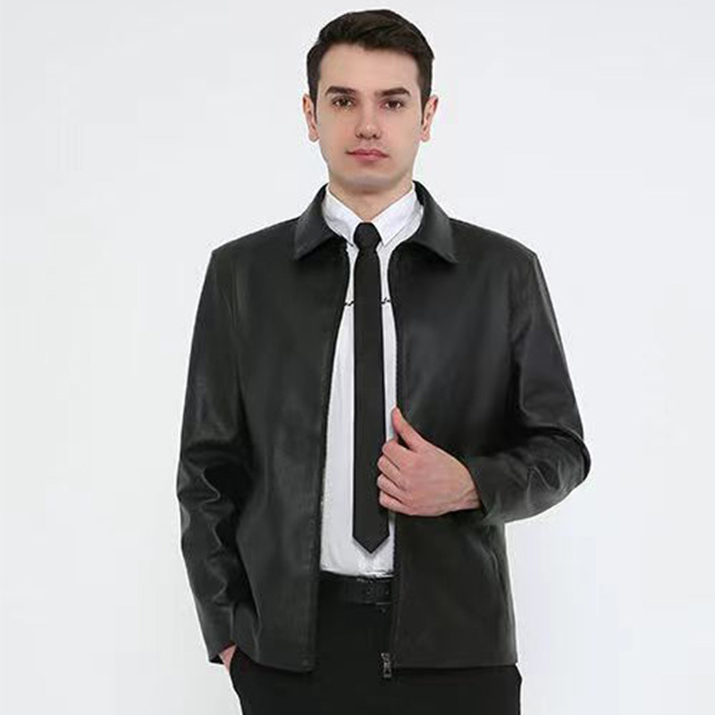 가죽 남성 가죽 자켓 코트 스탠드 칼라 중년 아빠 2024 새로운 봄과 가을 얇은 공장 도매스토어 가기