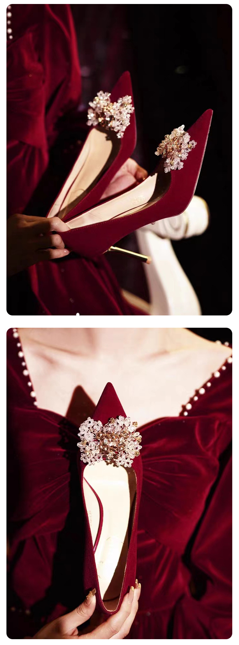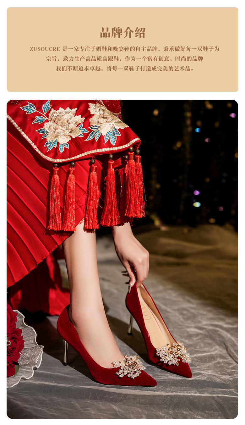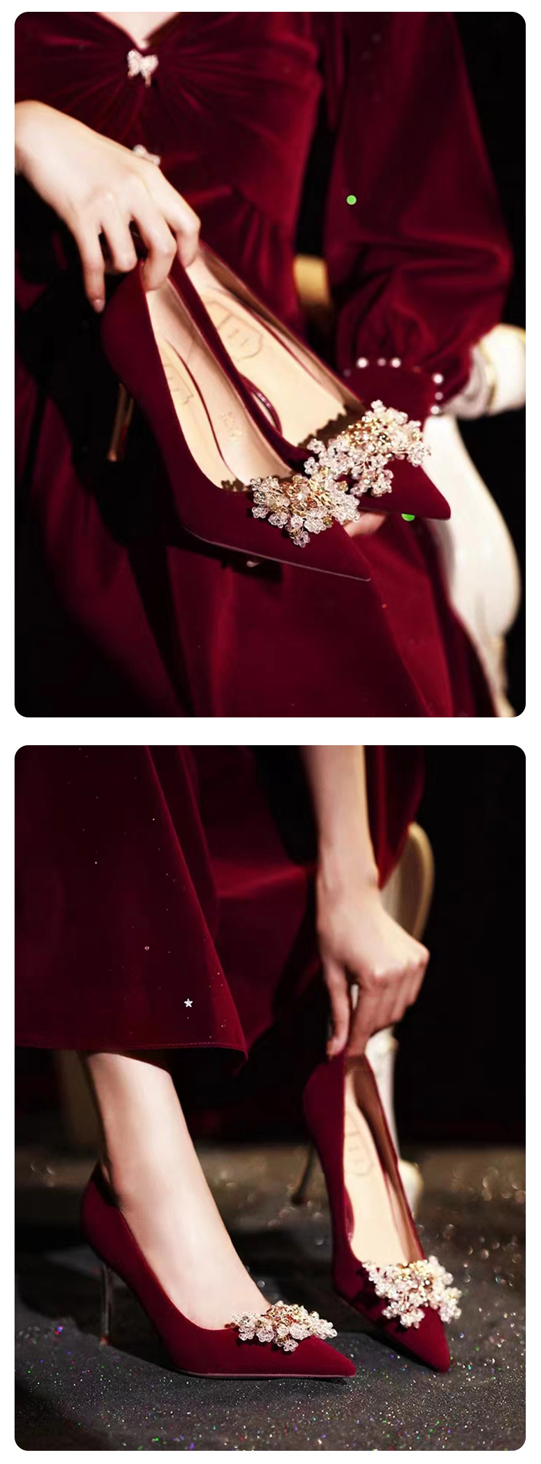 708-36 빨간 웨딩 슈즈 신부 신발 새로운 중국 Xiuhe 웨딩 원피스 투웨어 약혼 토스트 세트 양가죽 하이힐