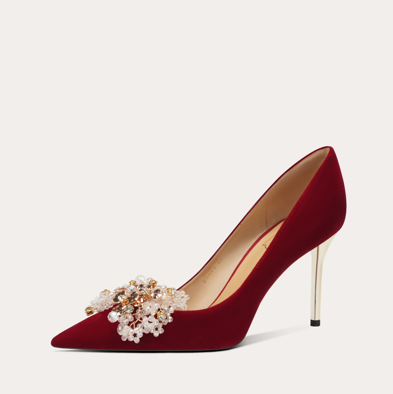 708-36 빨간 웨딩 슈즈 신부 신발 새로운 중국 Xiuhe 웨딩 원피스 투웨어 약혼 토스트 세트 양가죽 하이힐스토어 가기