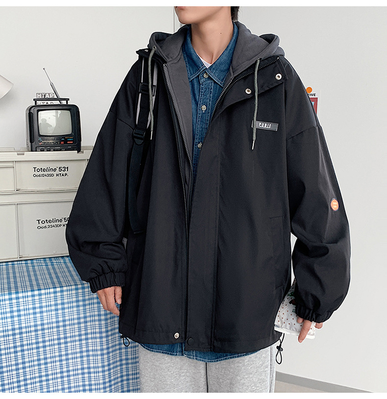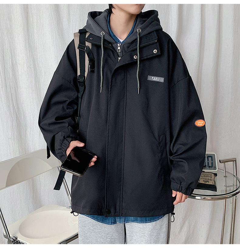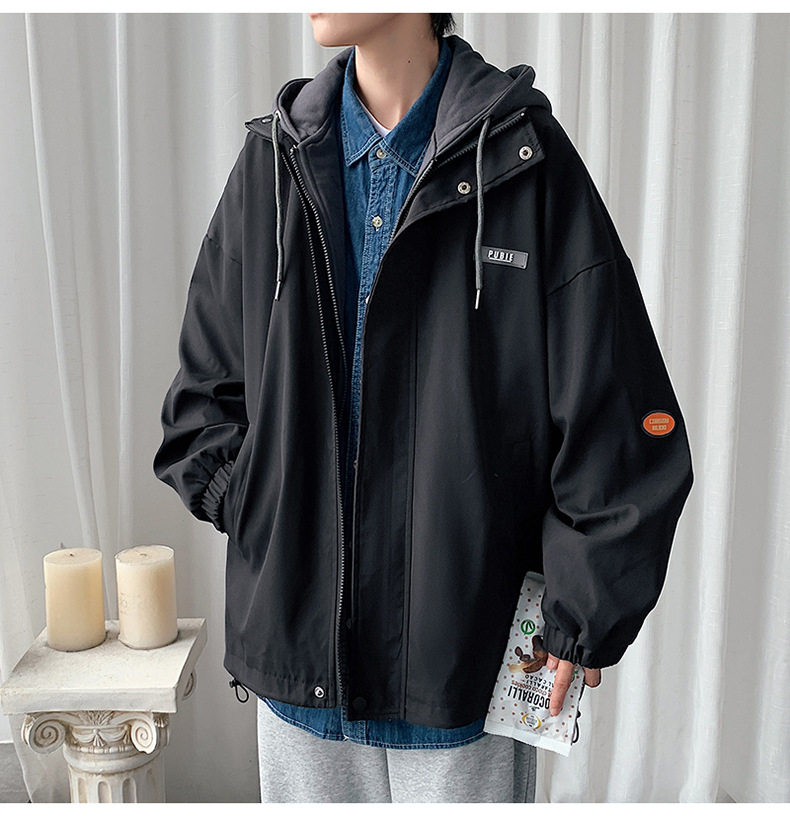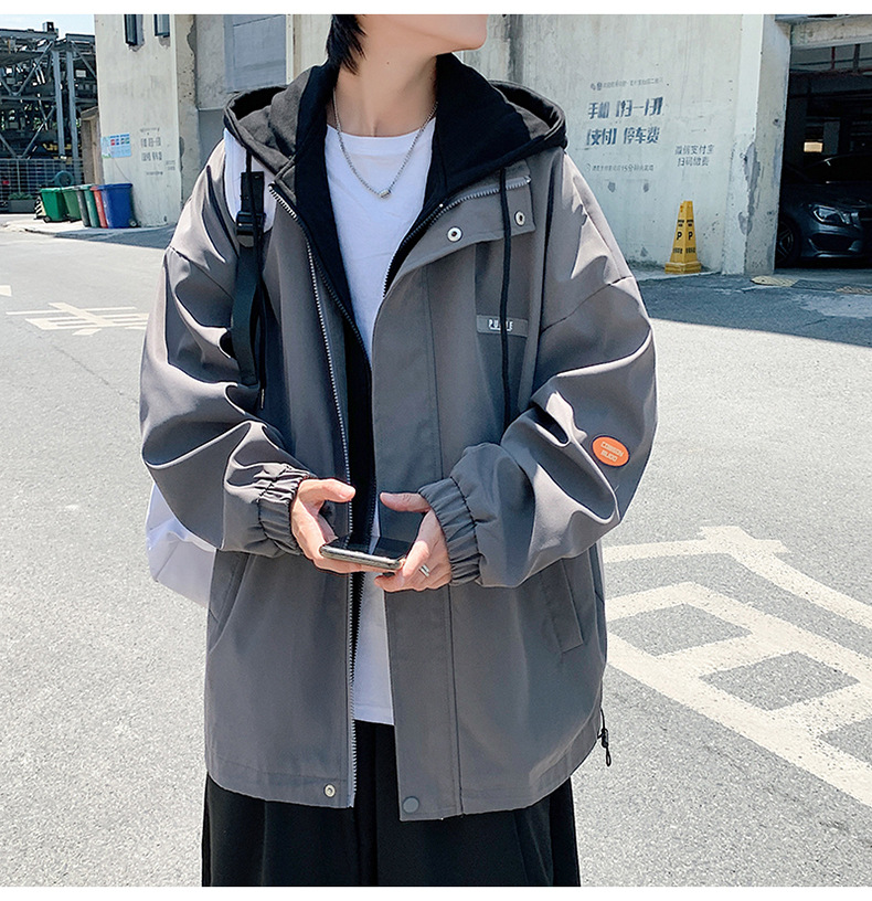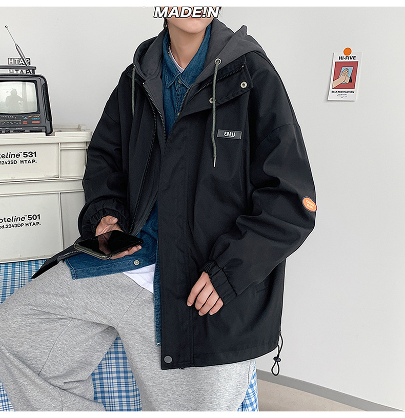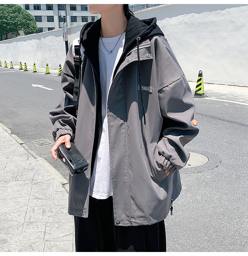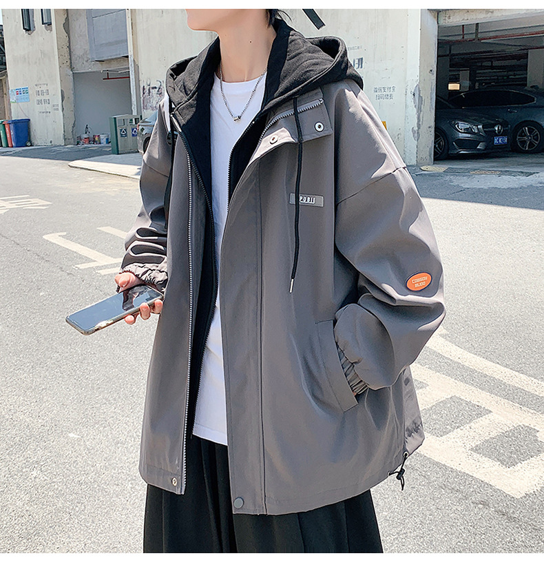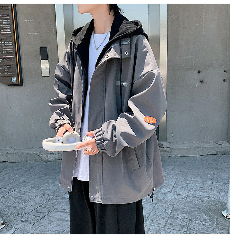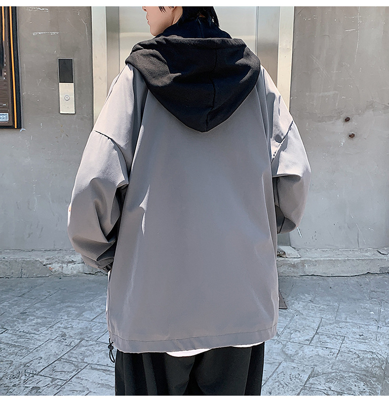 재킷 남자의 봄 가을과 겨울 새로운 윈드 브레이커 느슨한 소년 후드 캐주얼 바지 가짜 투피스 재킷스토어 가기