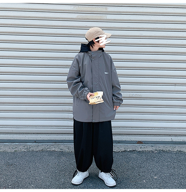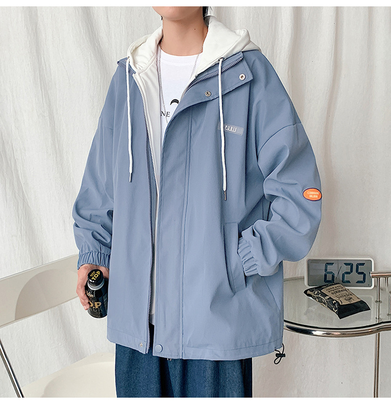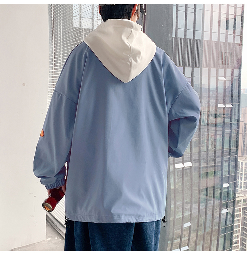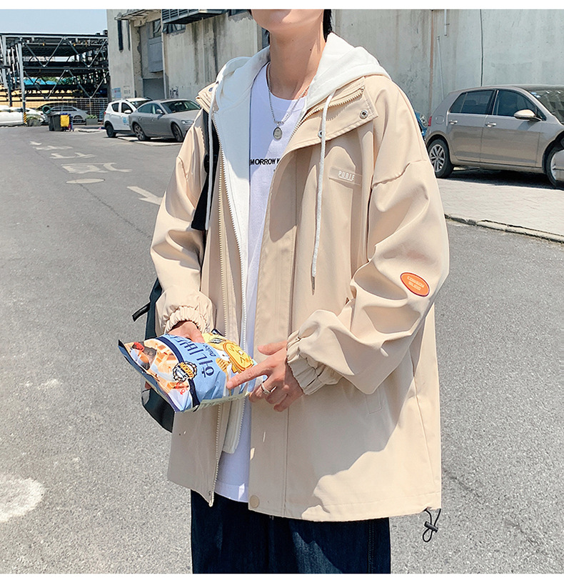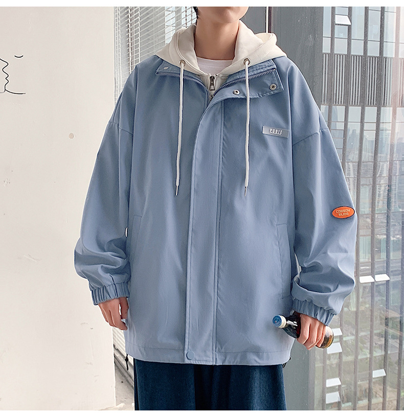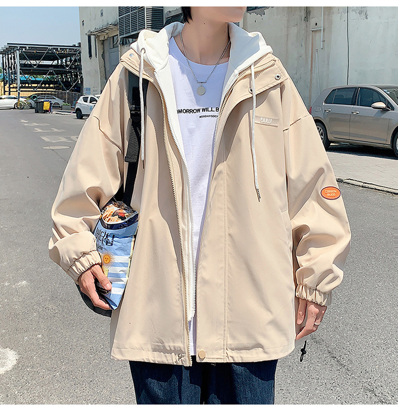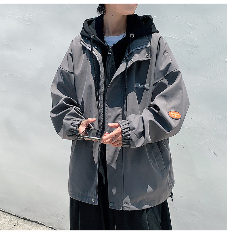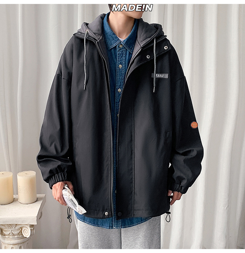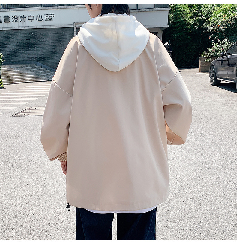 재킷 남자의 봄 가을과 겨울 새로운 윈드 브레이커 느슨한 소년 후드 캐주얼 바지 가짜 투피스 재킷스토어 가기