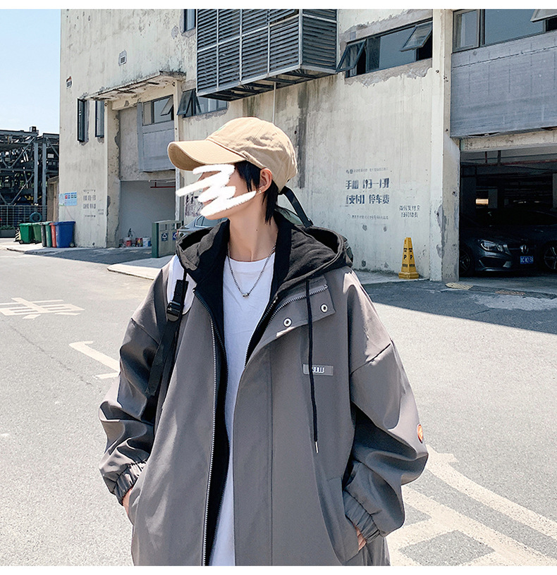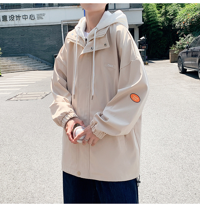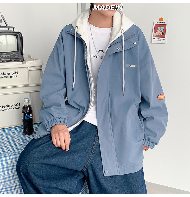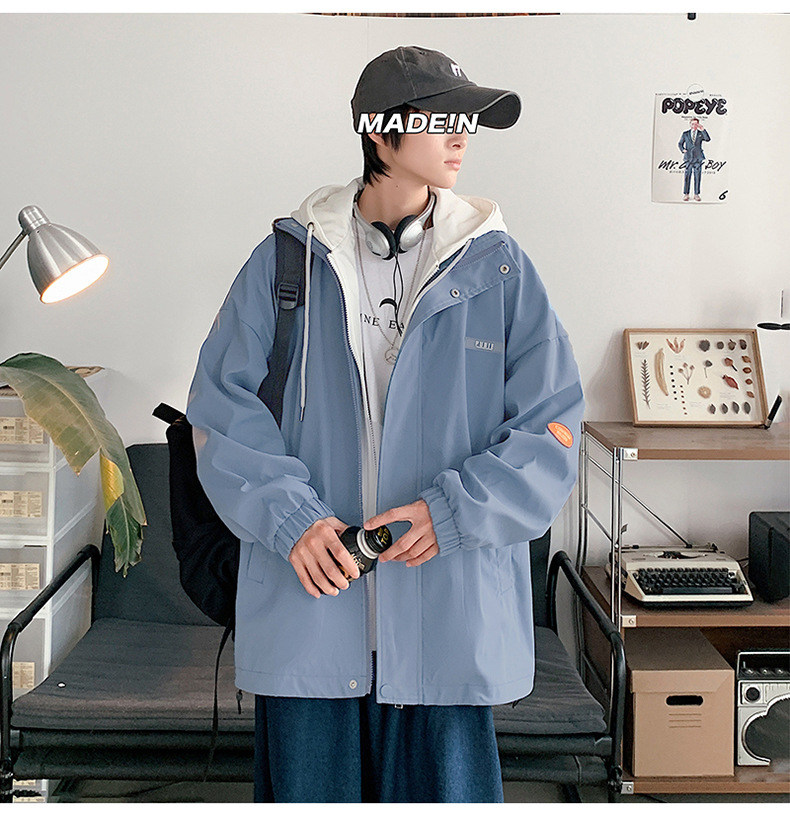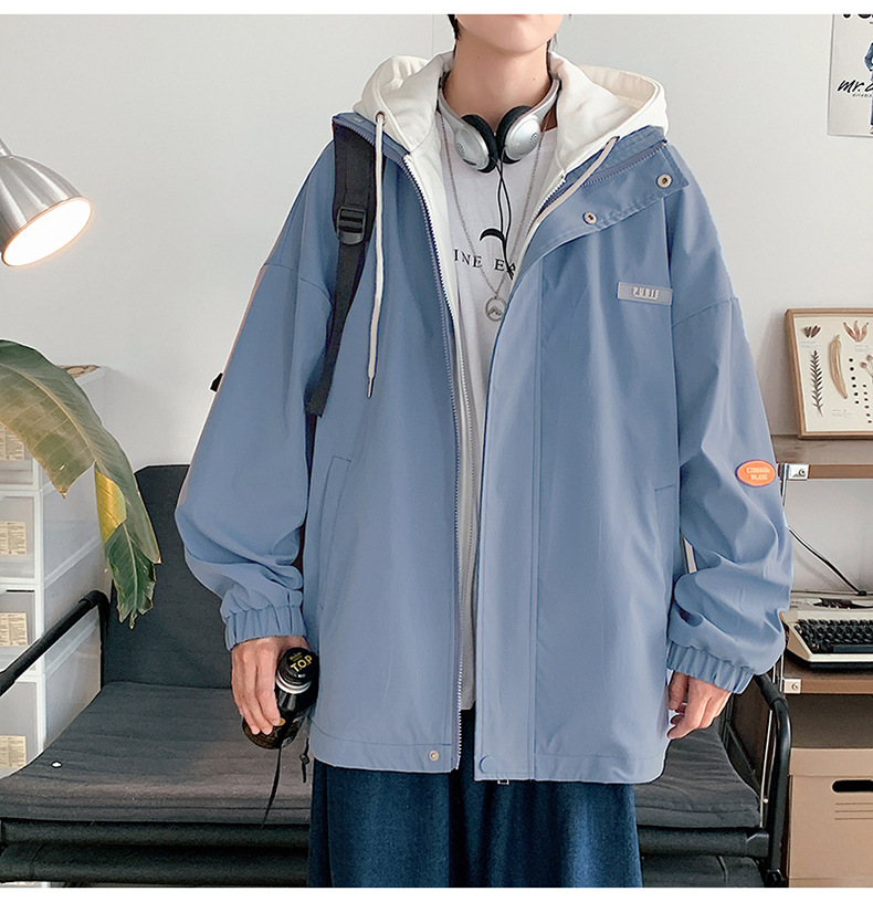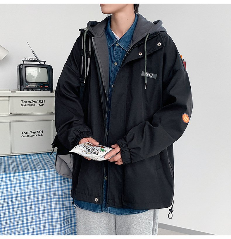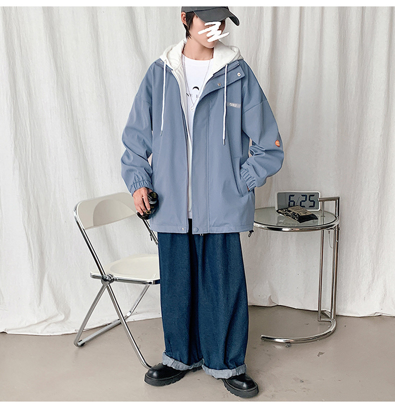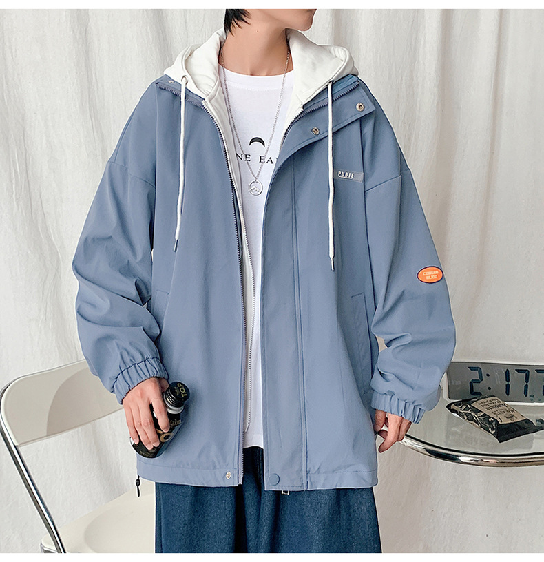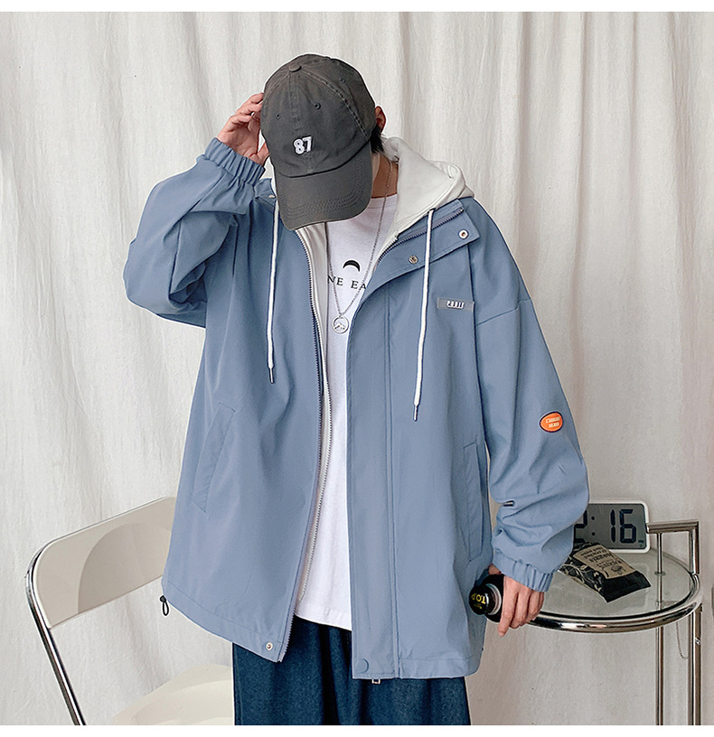 재킷 남자의 봄 가을과 겨울 새로운 윈드 브레이커 느슨한 소년 후드 캐주얼 바지 가짜 투피스 재킷스토어 가기