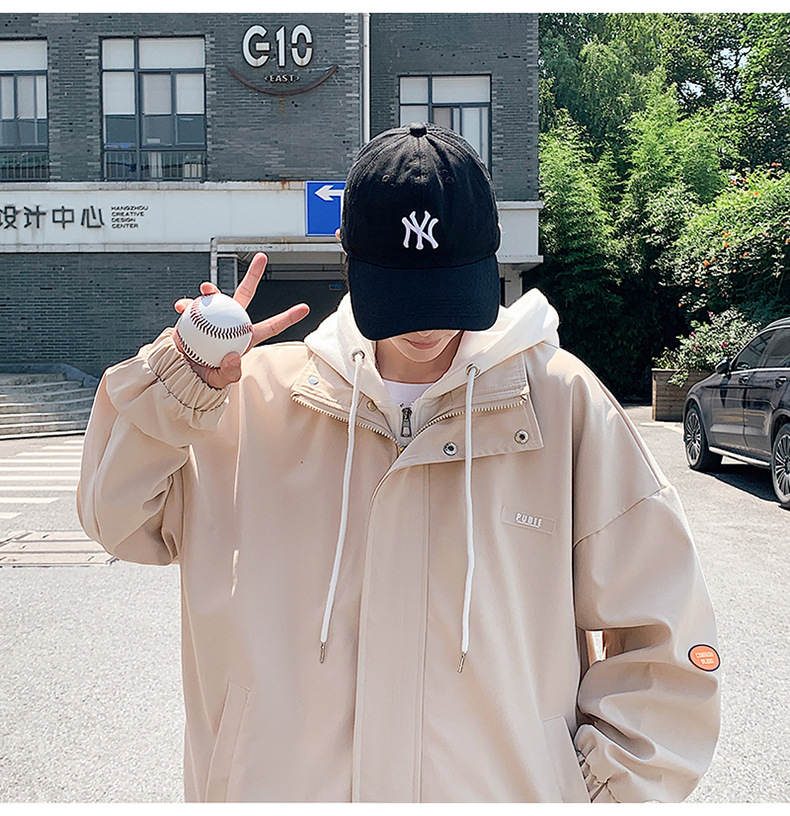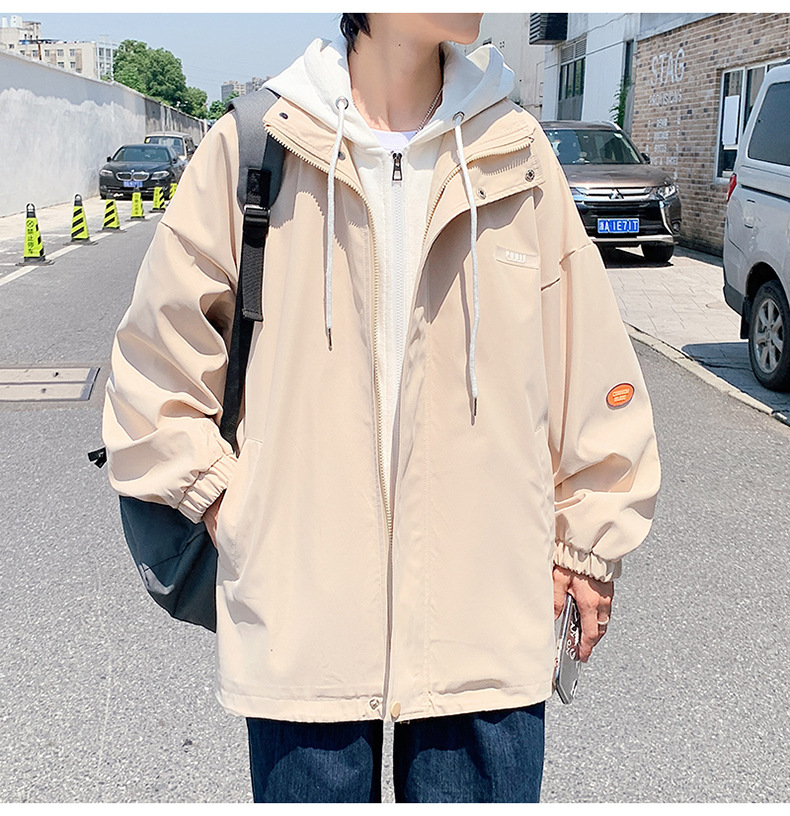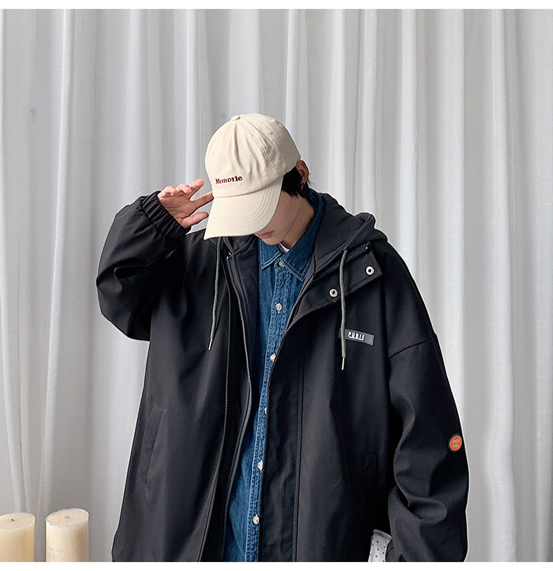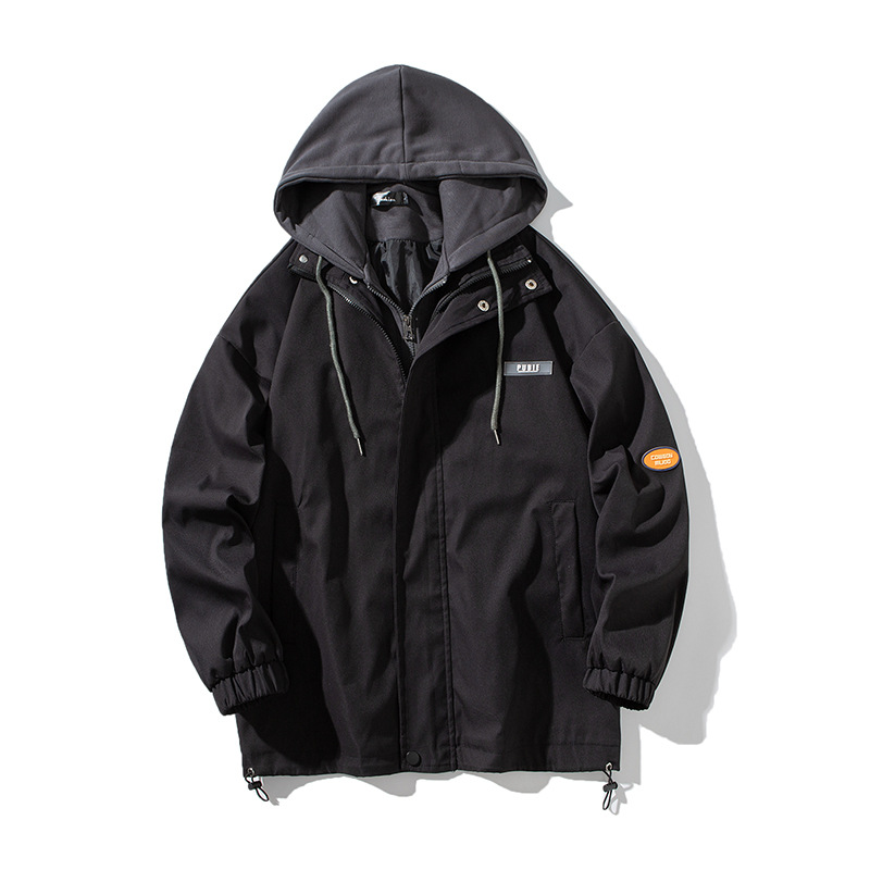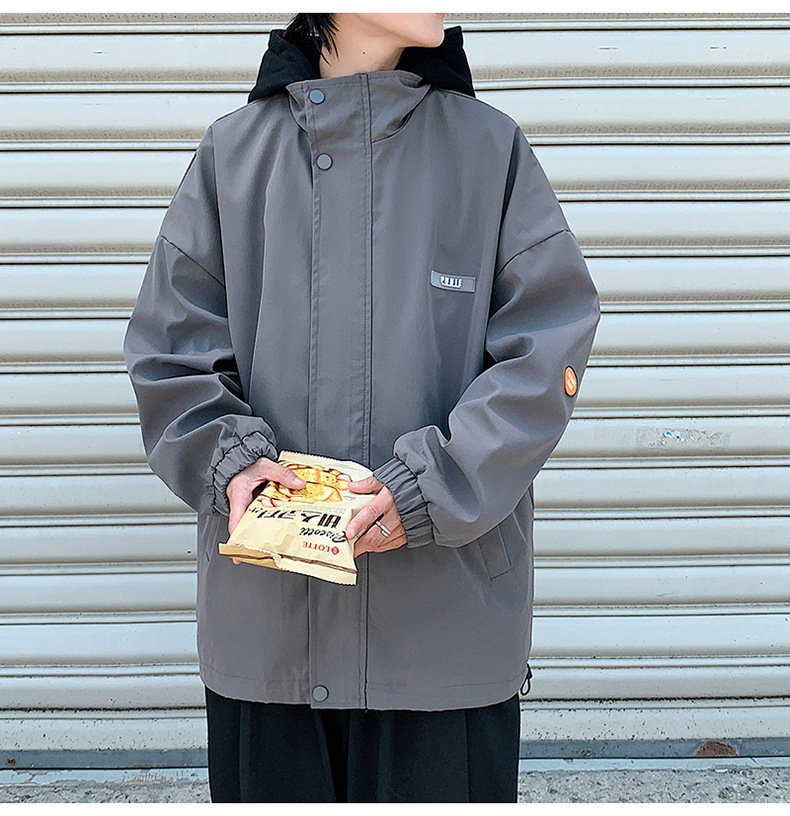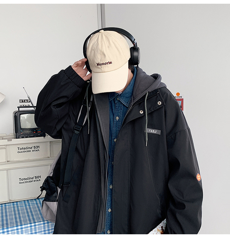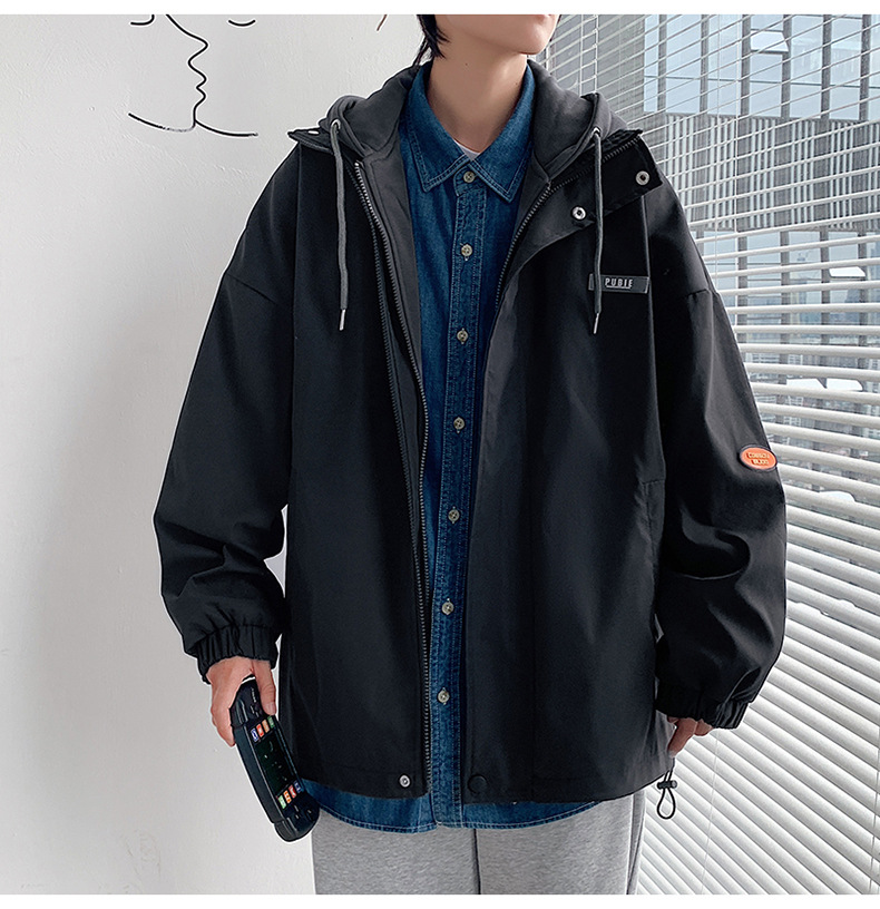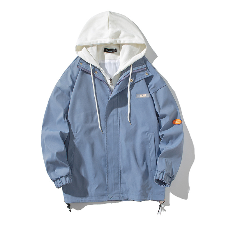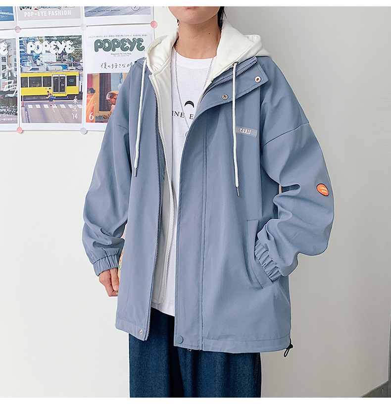 재킷 남자의 봄 가을과 겨울 새로운 윈드 브레이커 느슨한 소년 후드 캐주얼 바지 가짜 투피스 재킷스토어 가기