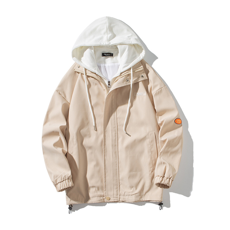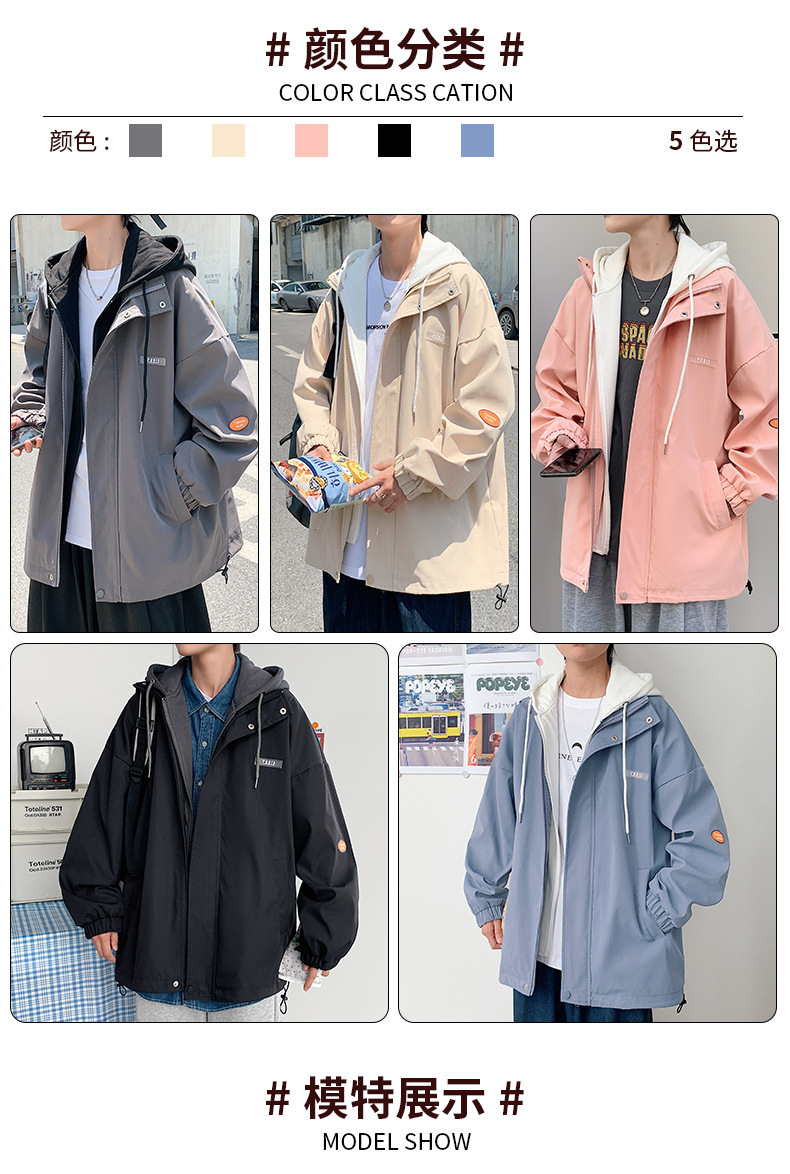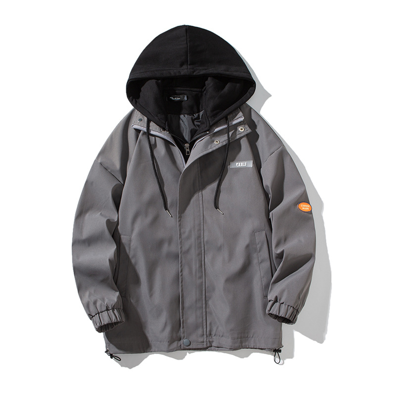재킷 남자의 봄 가을과 겨울 새로운 윈드 브레이커 느슨한 소년 후드 캐주얼 바지 가짜 투피스 재킷