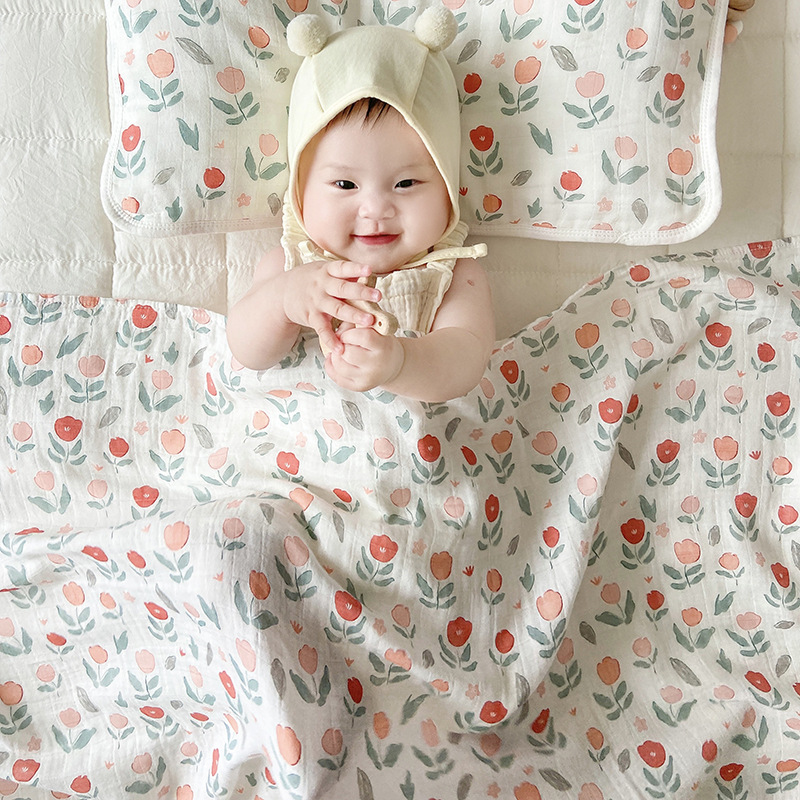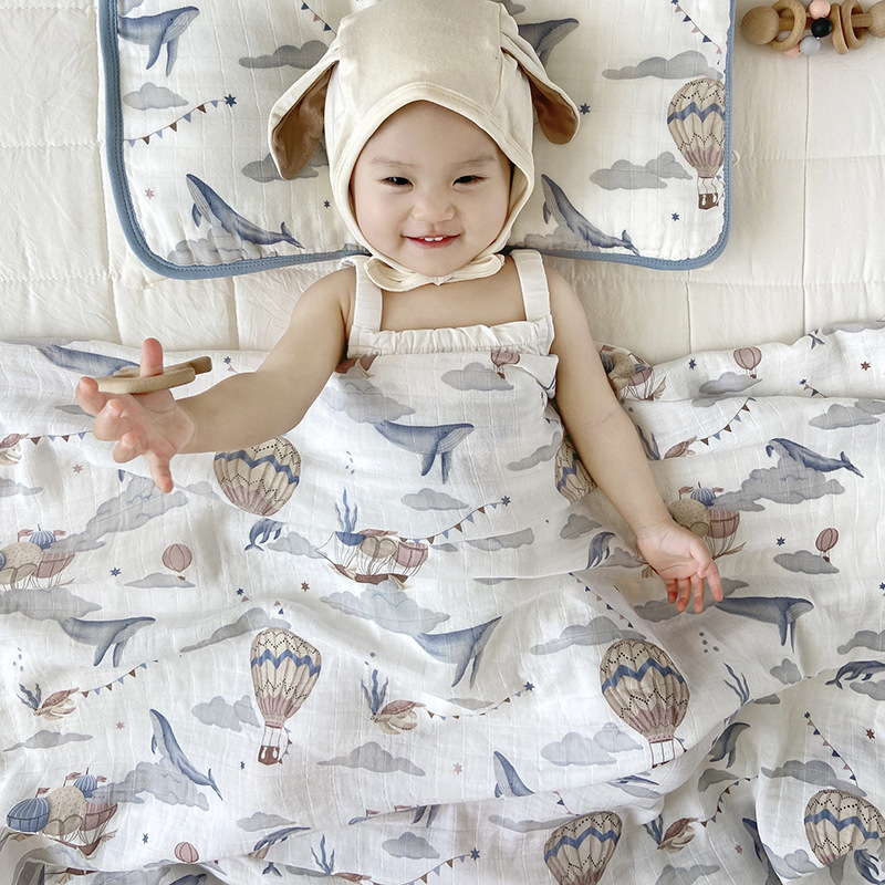 더블 레이어 대나무 섬유 아기 담요 크로스 보더 거즈 아기 담요 신생아 대나무 면 포장 천 여름 얇은 담요 도매