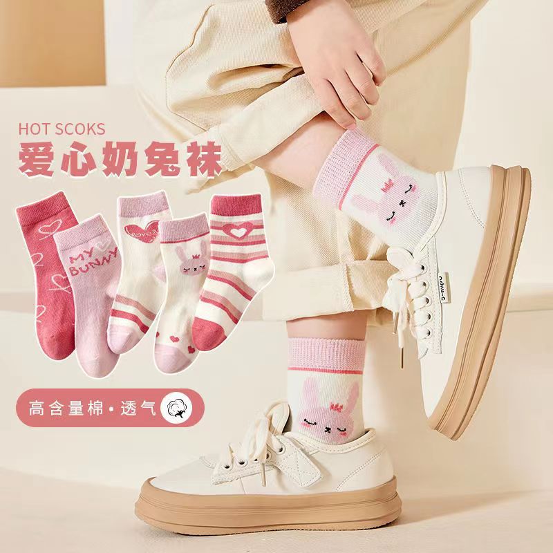 어린이 양말 가을과 겨울 중간 길이 양말 부모-자식 양말 중간 길이 양말 한국식 스마일 스포츠 편지 소년과 소녀를위한 모든 경기 양말