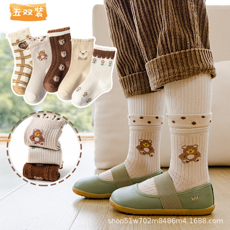 어린이 양말 가을과 겨울 중간 길이 양말 부모-자식 양말 중간 길이 양말 한국식 스마일 스포츠 편지 소년과 소녀를위한 모든 경기 양말스토어 가기