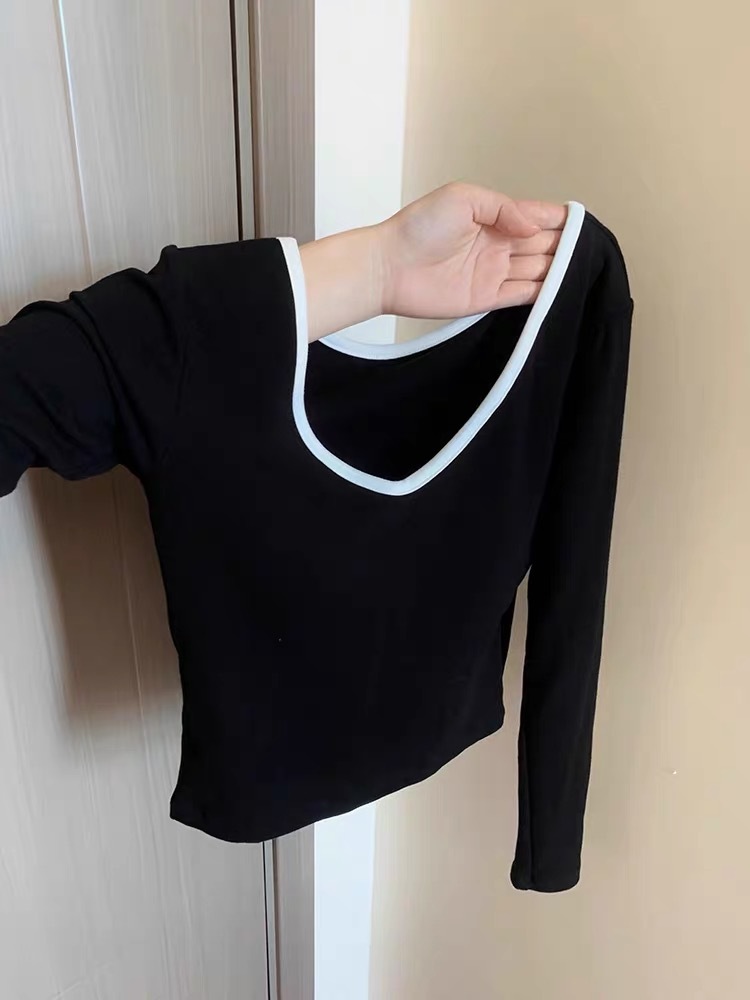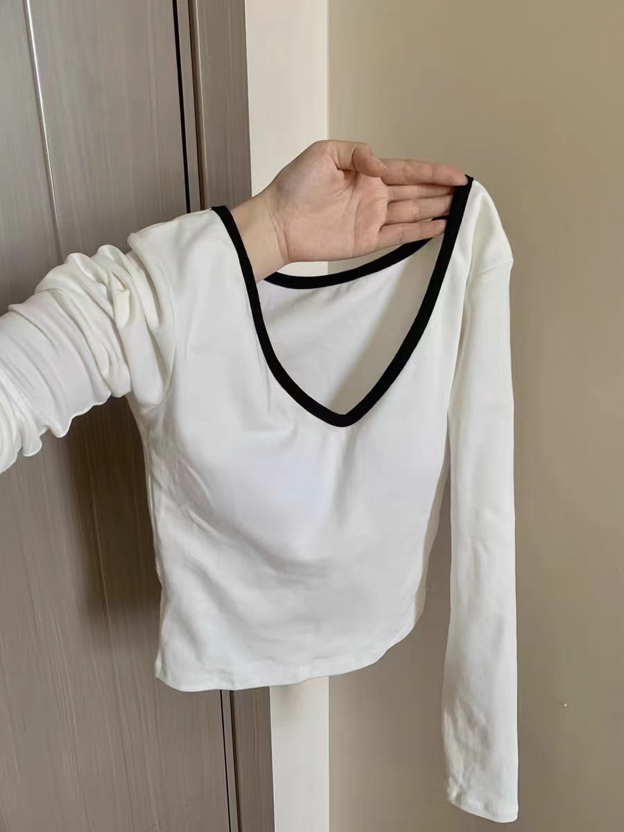 가을과 겨울 가슴 패드가 있는 긴팔 티셔츠 여성 속옷 원피스 슬리밍 올매치 아우터 슬림핏 브이넥 스파이스 걸 탑스토어 가기