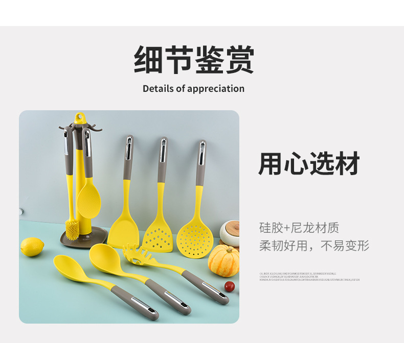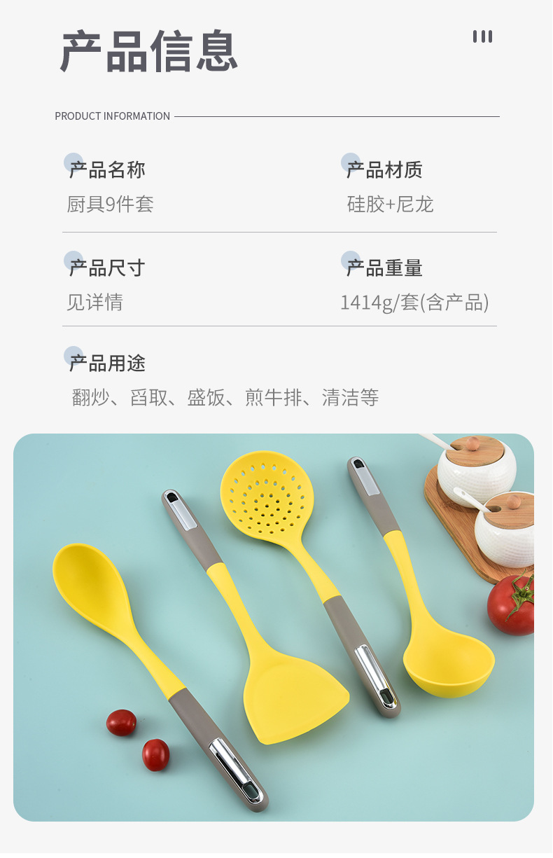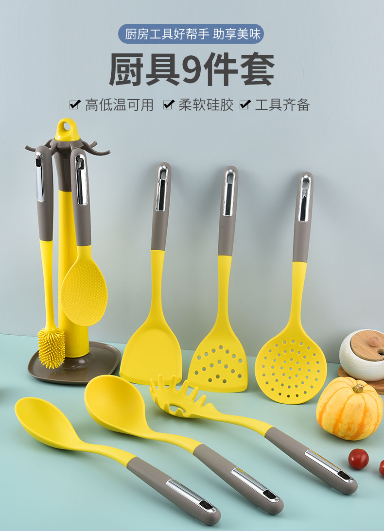 실리콘 조리기구 9종 세트, 조리용 주걱, 주방용품, 실리콘 냄비 주걱, 수프 스푼, 붙지 않는 조리기구 세트