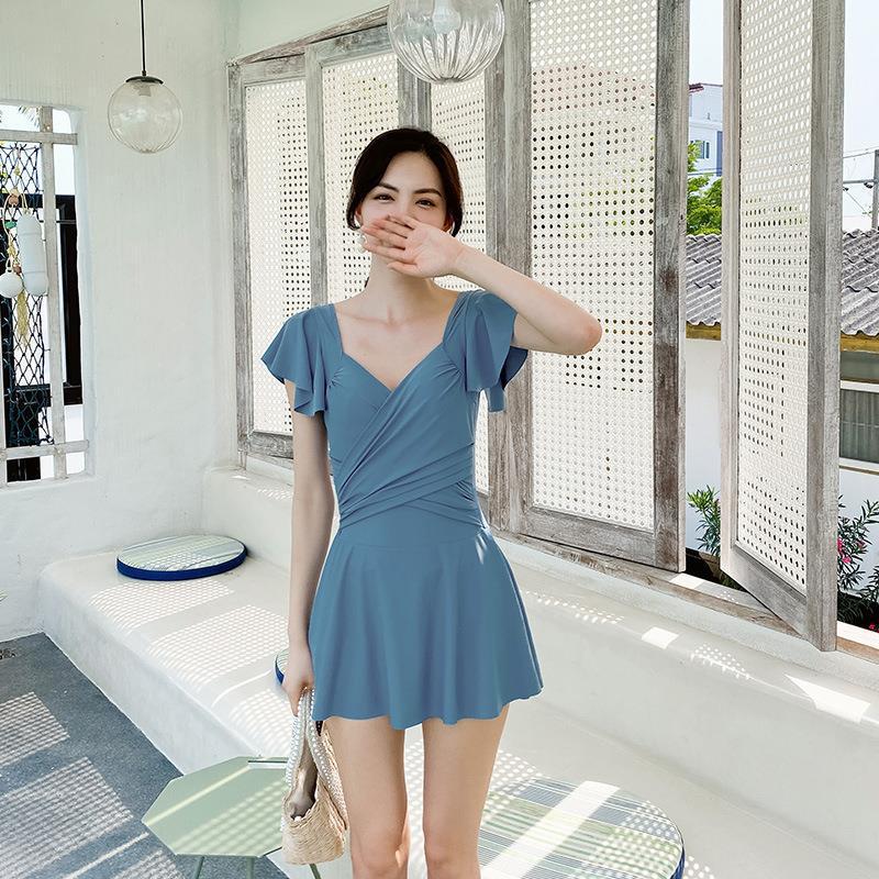 2022 보수적 인 원피스 슬림 커버 요정 팬 한국 섹시 스커트 뜨거운 봄 해변 휴가 수영복스토어 가기